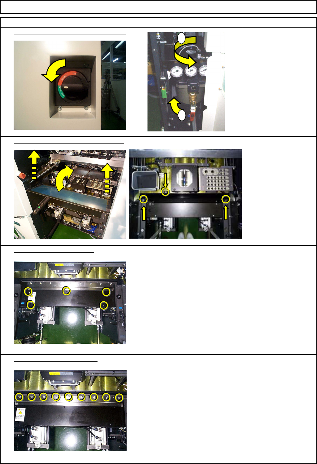 Machinery Part Replacement Remarks Cutting Unit Item Remove the bar. Allen key 3 mm Screw M4 2 pcs. Replace the movable cutter blade. Danger: Be careful not to get your hand cut. Allen key 4 mm Screw M5 9 pcs. Put the ba…