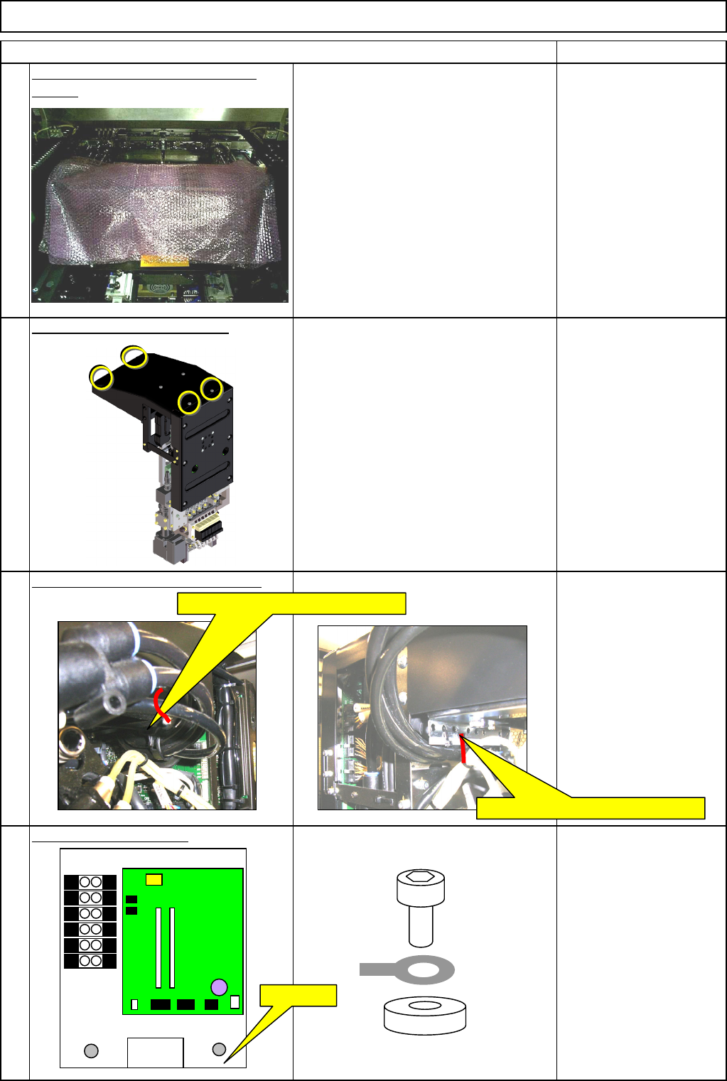 Machinery Part Replacement Remark Item 12-Nozzle Head Unit Put bubble wrap on the line camera sensor. To prevent the head from falling down. Bubble wrap Remove the upper head cover. Phillips screwdriver #2 M4 truss 4 pcs…