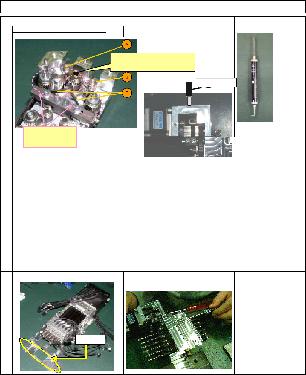 Machinery Part Replacement Remark Item 12-Nozzle Head Unit Adjust the tension of the short belt. Install the θ -unit. 14 See " θ -Unit Removal." Section 5-10-8 13 A djust the tension o f the two belts. This pul…