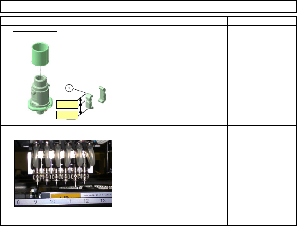 Machinery Part Replacement Remark 12-Nozzle Head Unit Item Replace the arm. Be careful not to position the arm upside down. Fit the spring and the nozzle holder 5 4 Narrow Wide EJM8A-E-SMA051010-A01-00 Page 5-10-10-3