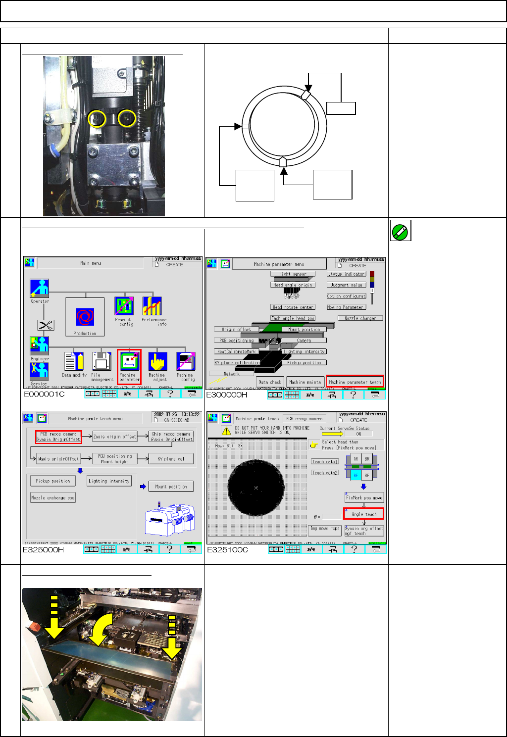 Machinery Part Replacement ・ Tools None ・ Jig None 12-Nozzle Head Teaching 5-11-2 Board Recognition Camera --- X and Y-axis Origin Offset Clean the upper surface of the thermal correction pole beforehand. This section de…