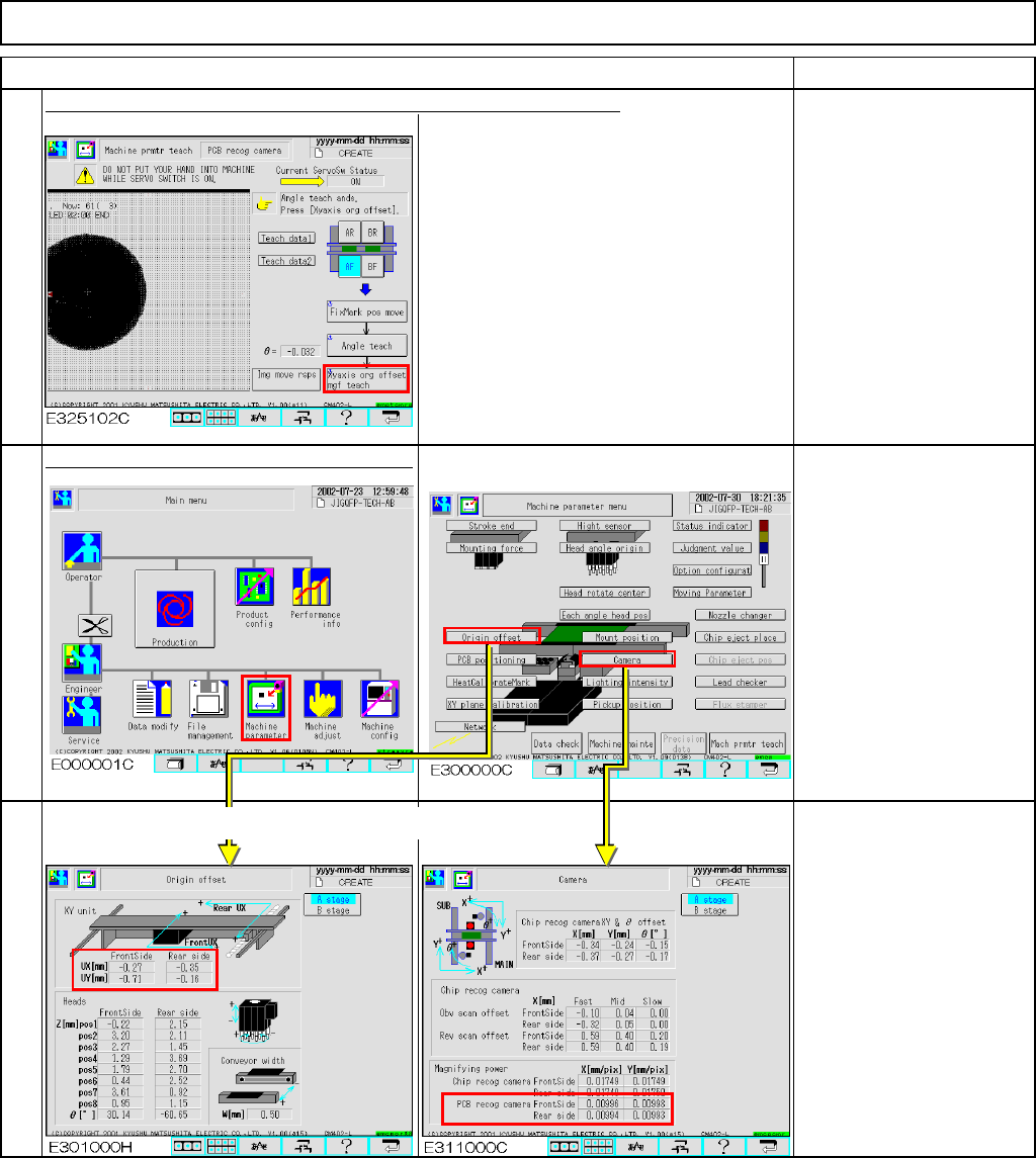 Machinery Part Replacement Remarks Item 12-Nozzle Head Teaching Press [Unlock] and [Xyaxis org offset mgf teach] simultaneously. The head camera recognizes the mark. The offset for the magnification of the camera is ente…