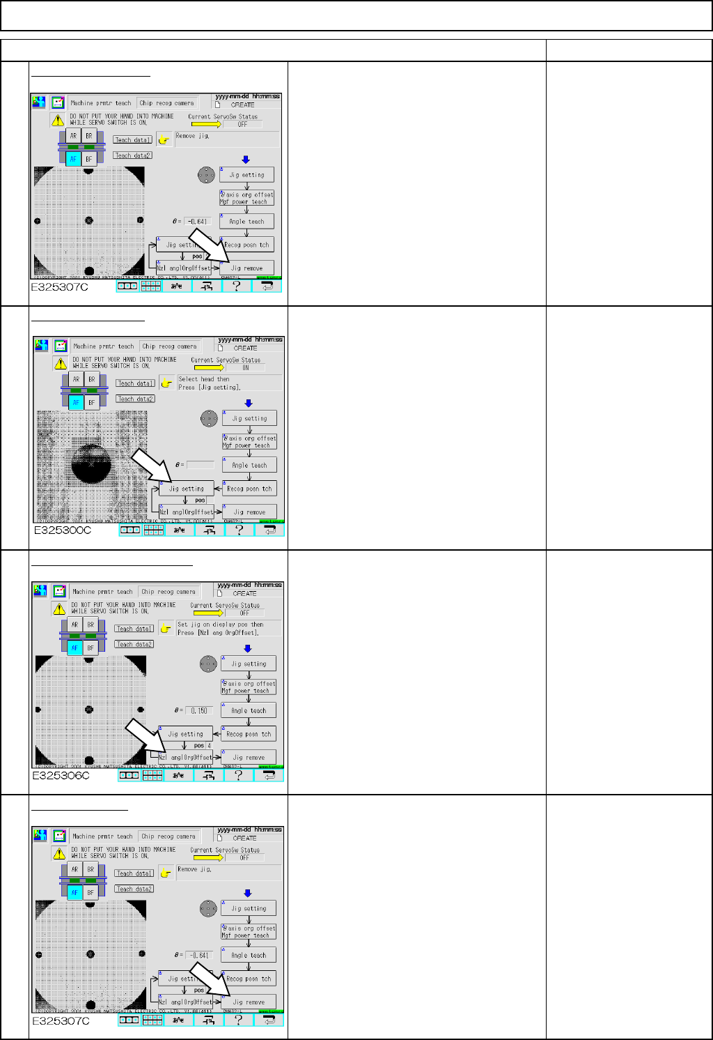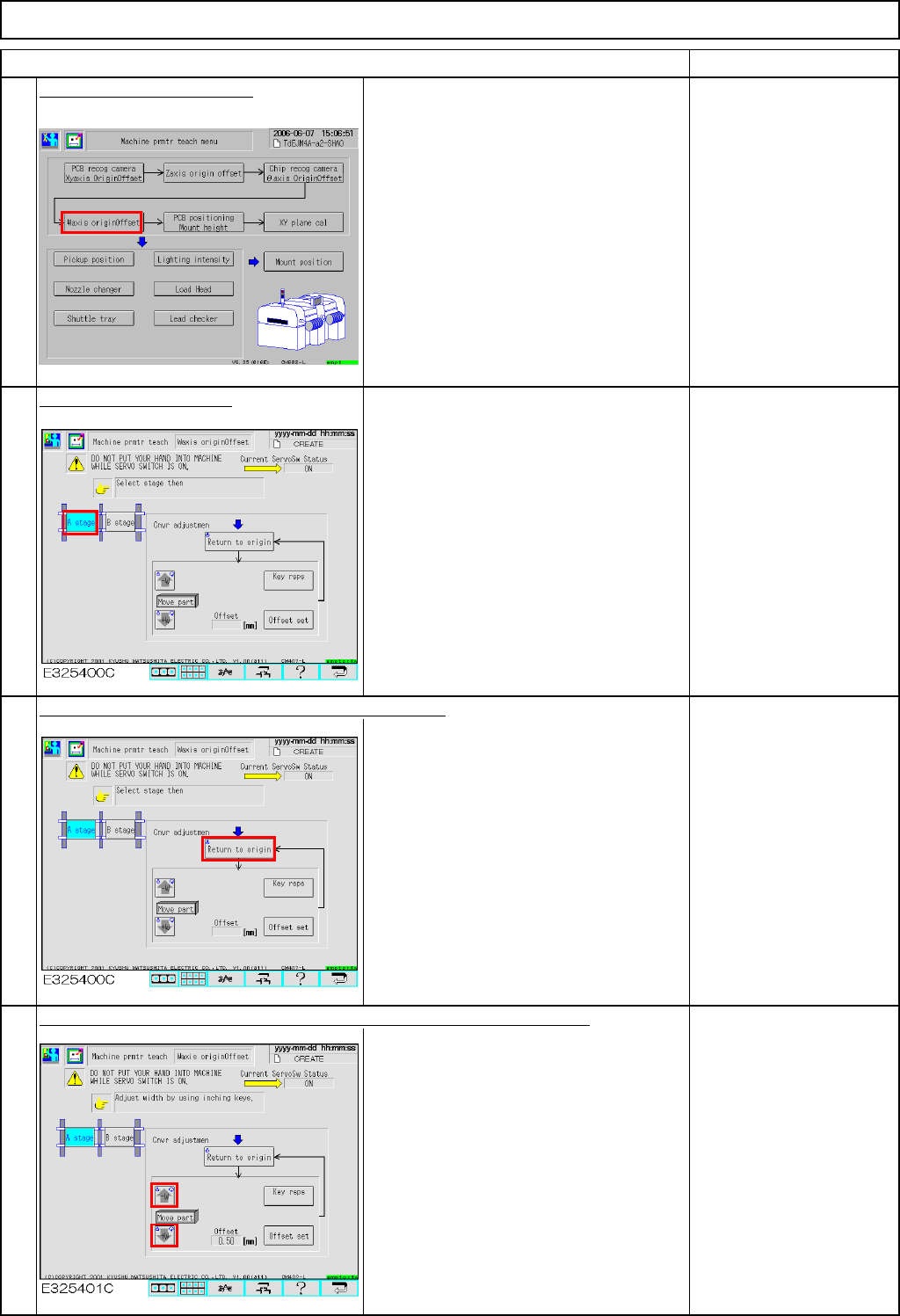 Maintenance Part Replacement 12-Nozzle Head Teaching Tools Ruler 500 mm Jig None 5-11-5 Conveyor-Width-Adjusting Axis Origin Offset Remove the support pins beforehand. This section describes the procedures for determinin…