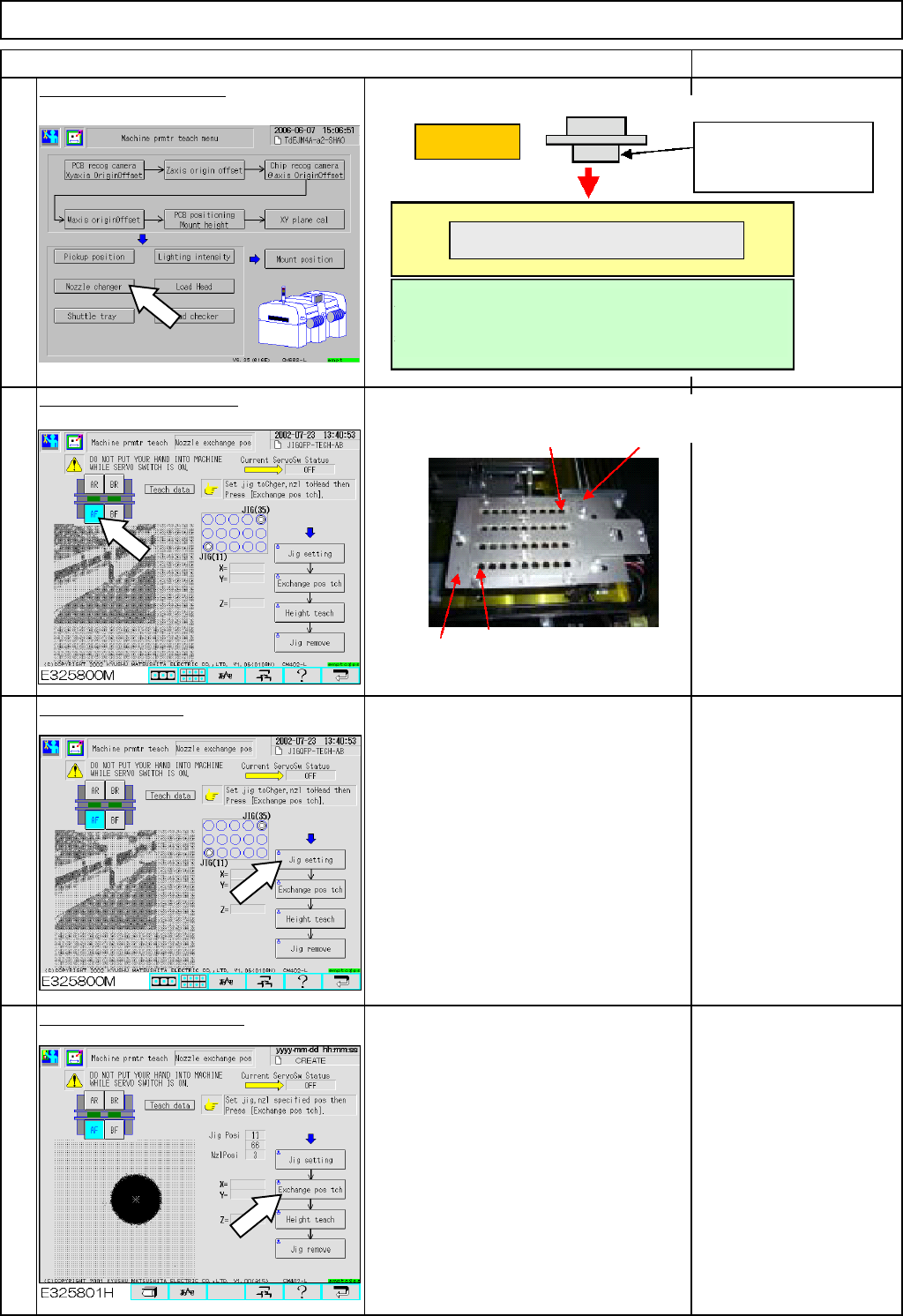 Machinery Part Replacement This section describes the procedures for determining the nozzle exchange position. Tools None Jig Non-registered Nozzle-changer-position- recognition jig Nozzle 130S 12-Nozzle Head Teaching 5-…