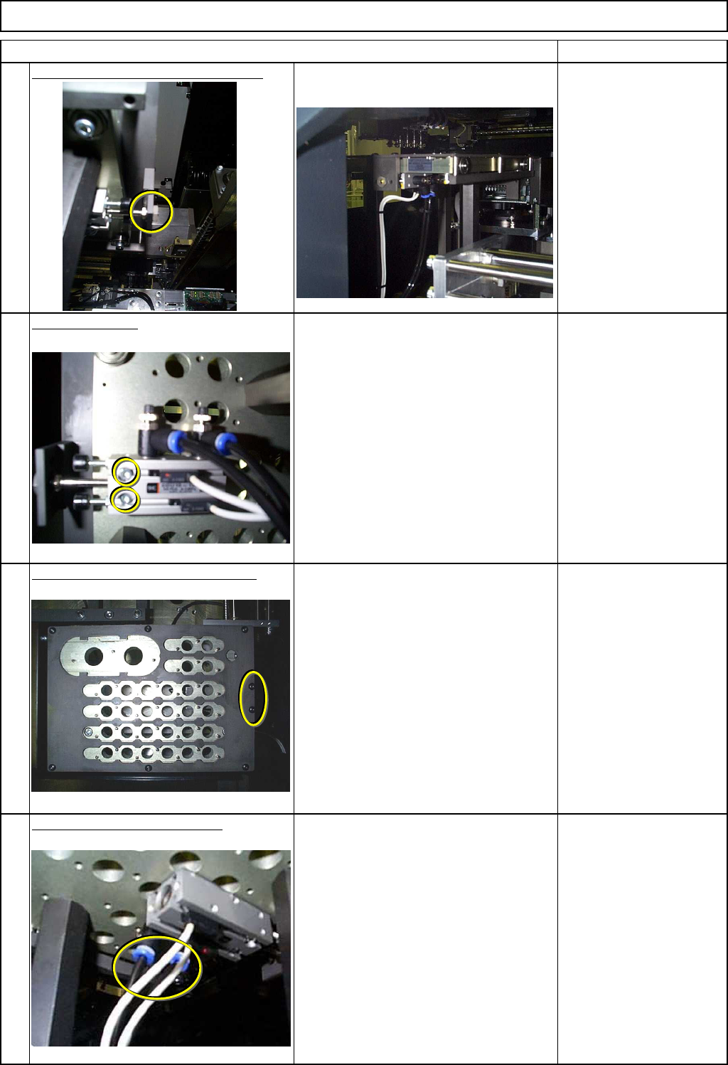Optional Accessory Parts Replacement Remarks Nozzle Changer Unit (8-nozzle type) Item Remove the cylinder air tubes. 5-000033 Remove the slide cover bracket. 5-000021 Allen key 2.5 mm Round cross-head screw M3 2 pcs. Rem…