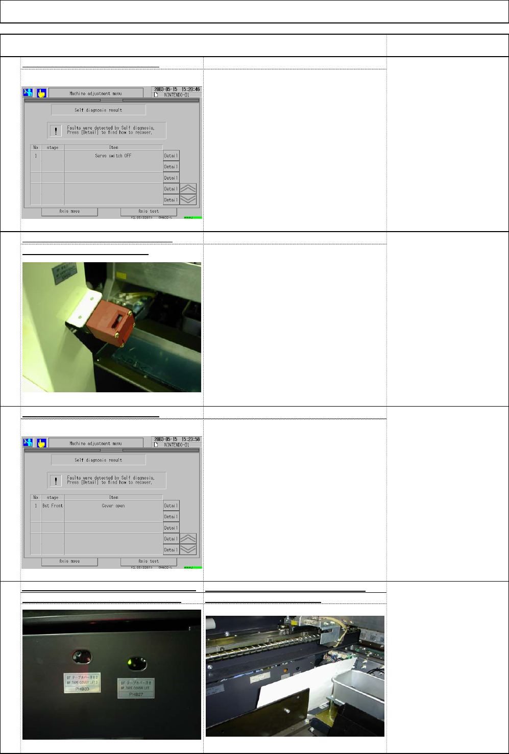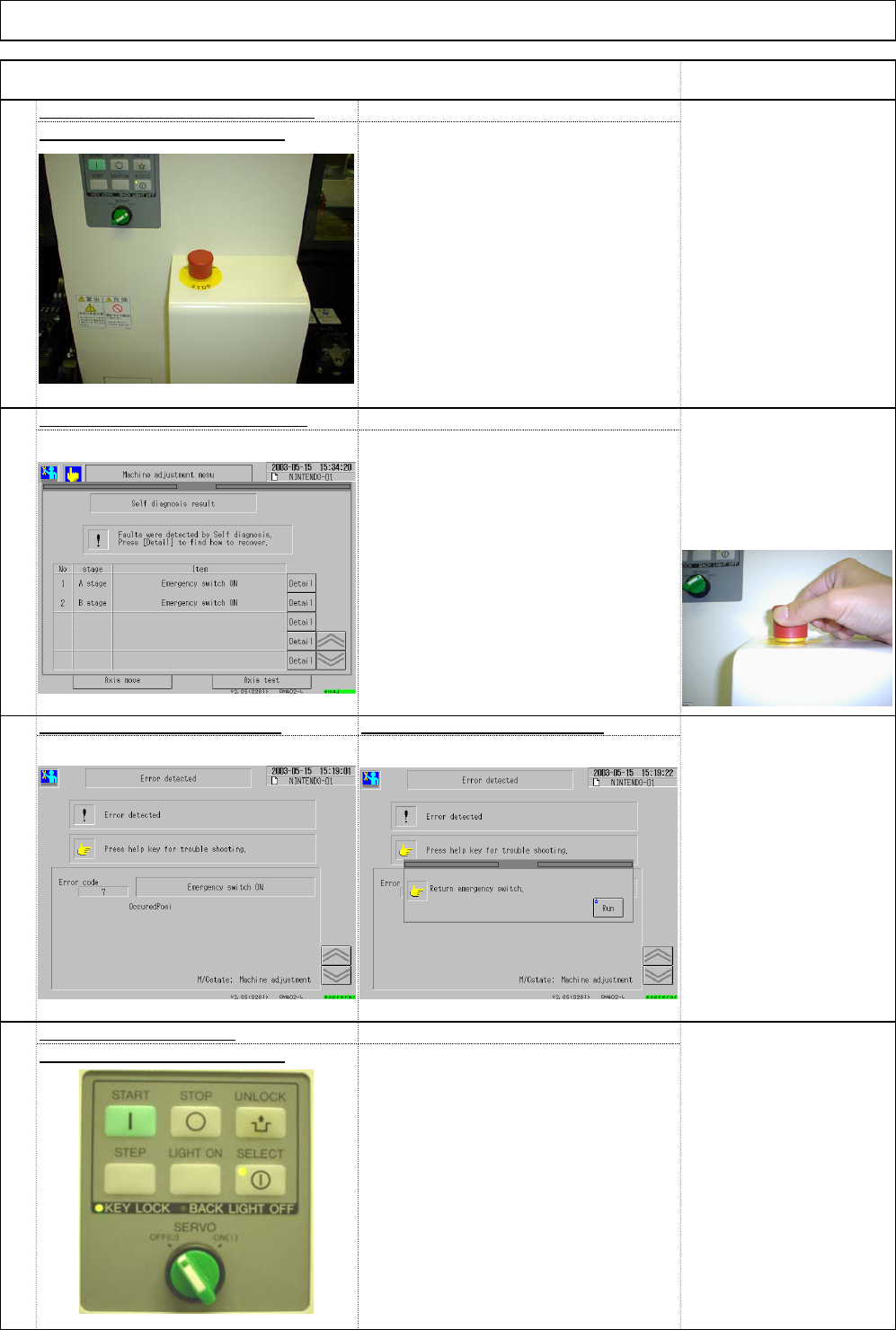 . Check that a warning message and an error message appear when either of the emergency stop switch is pressed. . This warning window appears when the machine is attempted to be operated with the emergency stop switch pr…
