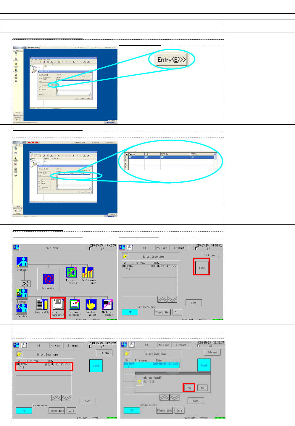 * To add the data to the machine list, press "Entry(E)." 72 Select (3) data name . Select (4) Yes . 71 Machine Main Men u Select (1) File management . Select (2) Load. 70 "Machine List Entry" windo w …