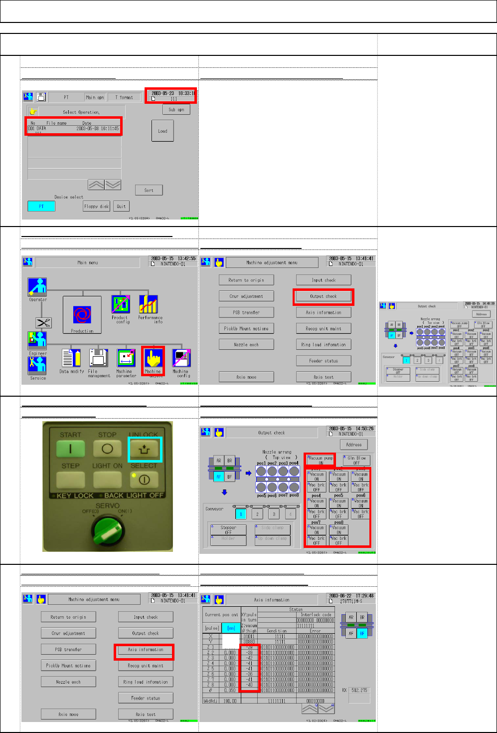 "Machine adjust." Select (4) Axis information
