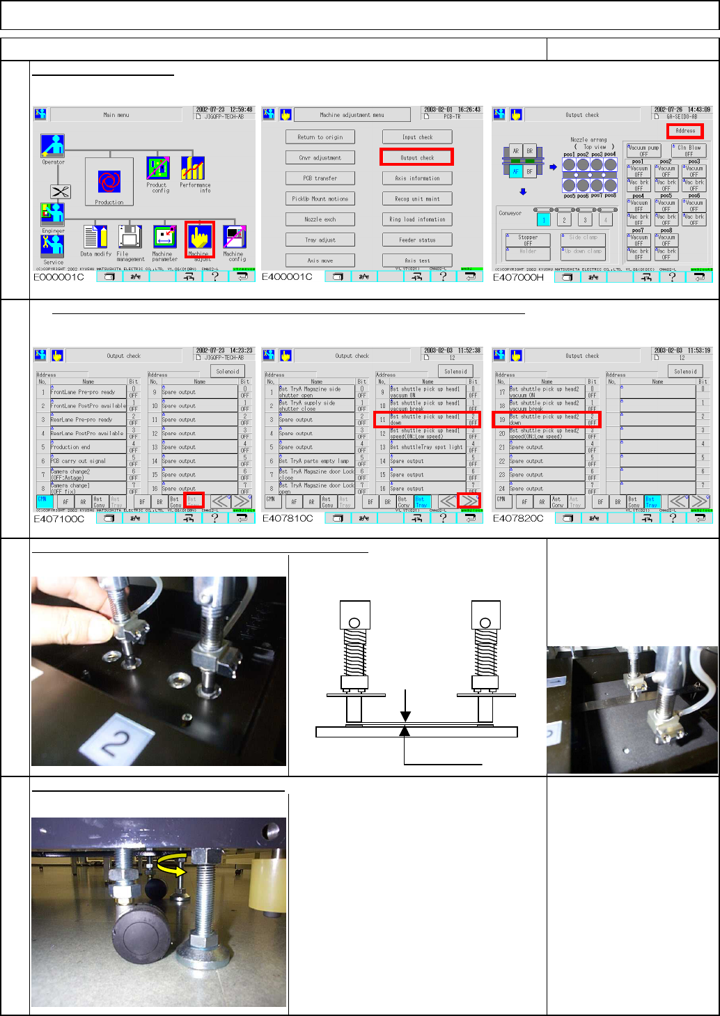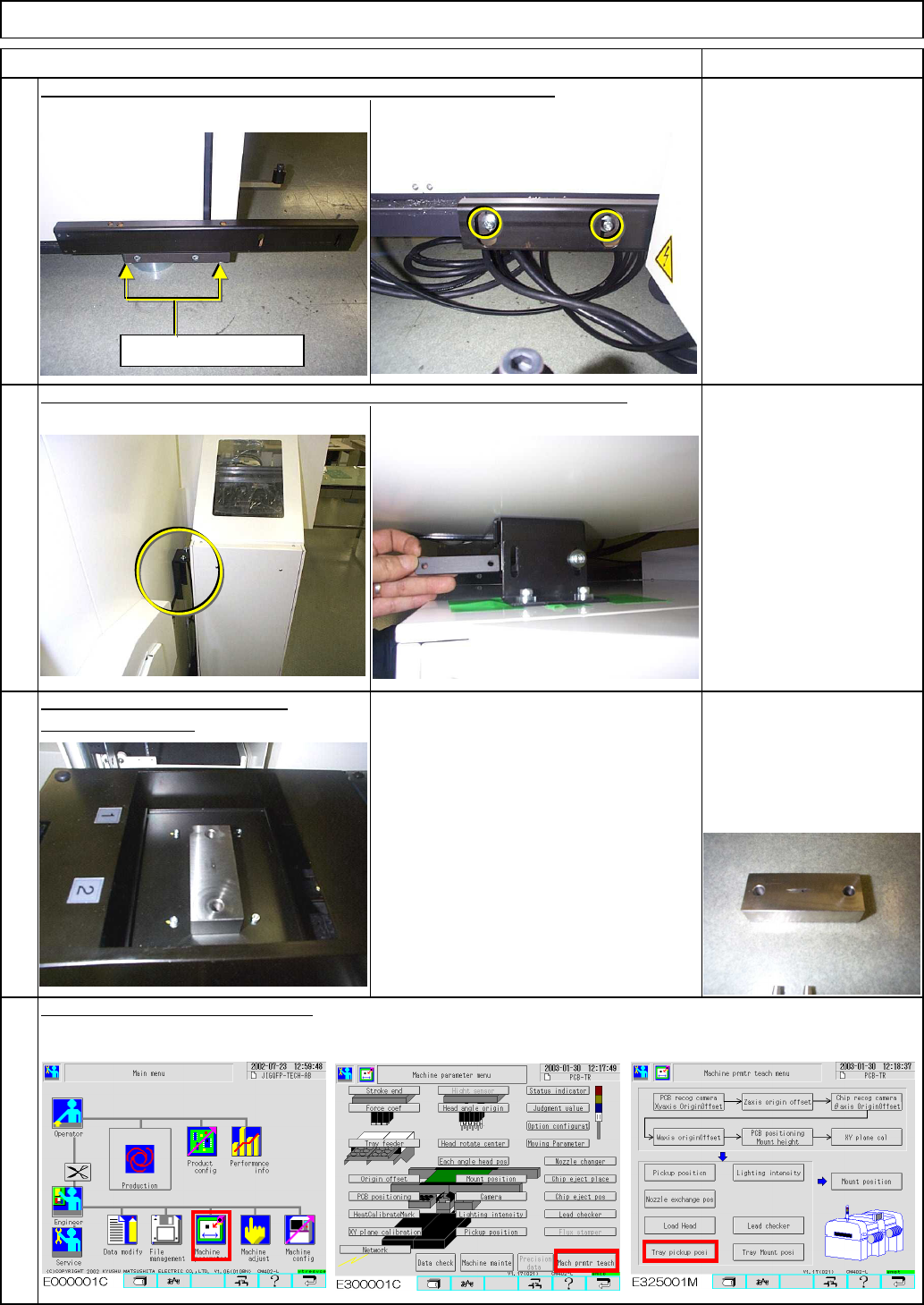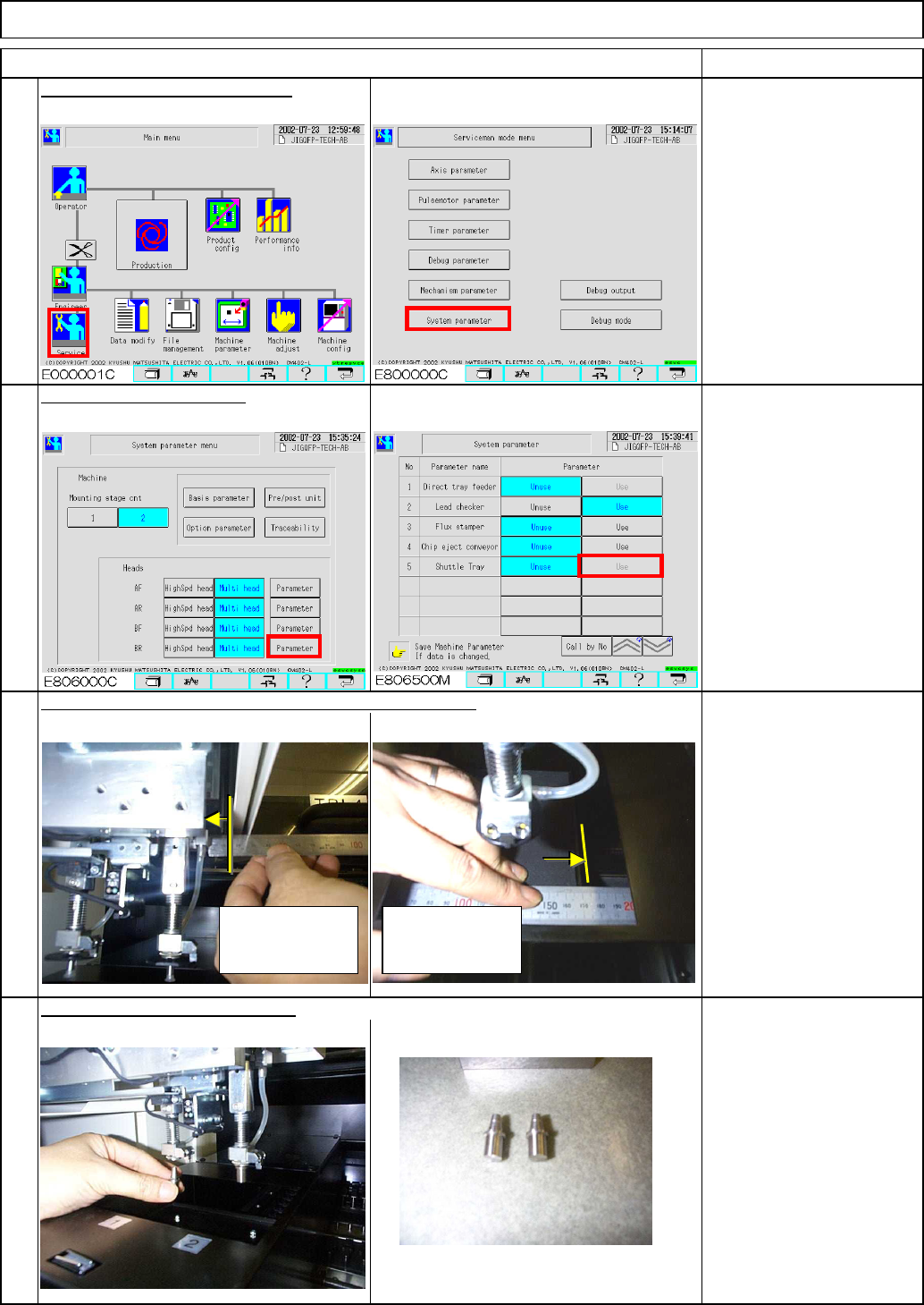 Tray Lower the pickup head. Remarks Leveling the pickup head, align it with the transfer head. Press [Bst shuttle pick up head 1 down] and [Bst shuttle pick up head 2 down]. Feeler gauge: 0.5 mm 20 Wrench 270 mm Confirm …
