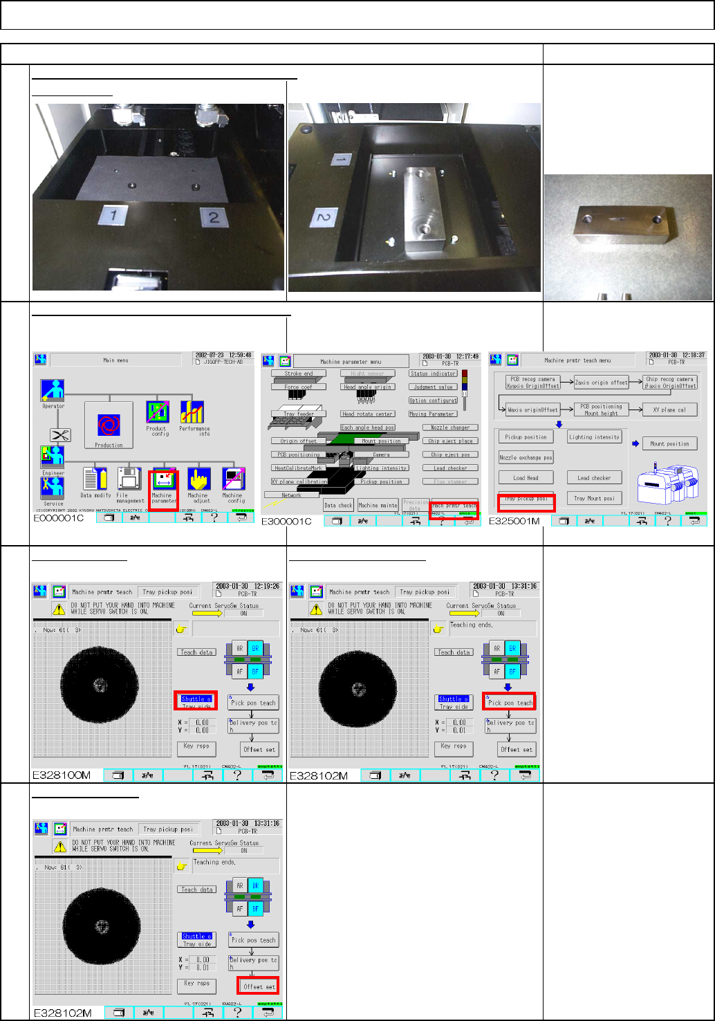 Carry out the machine parameter teaching.