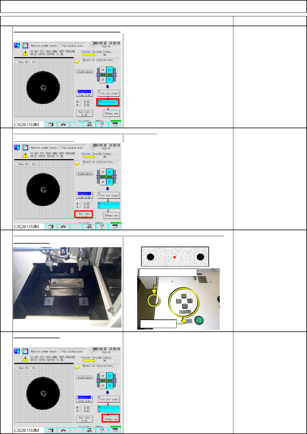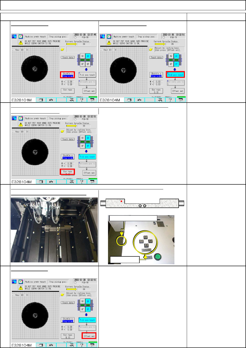 Precisely position the transfer and the shuttle heads. 6 7 8 determine the key rsps. Align the shuttle head sensor LED with the holes of the jig, using the inching keys According to how much the shuttle head is out of pl…