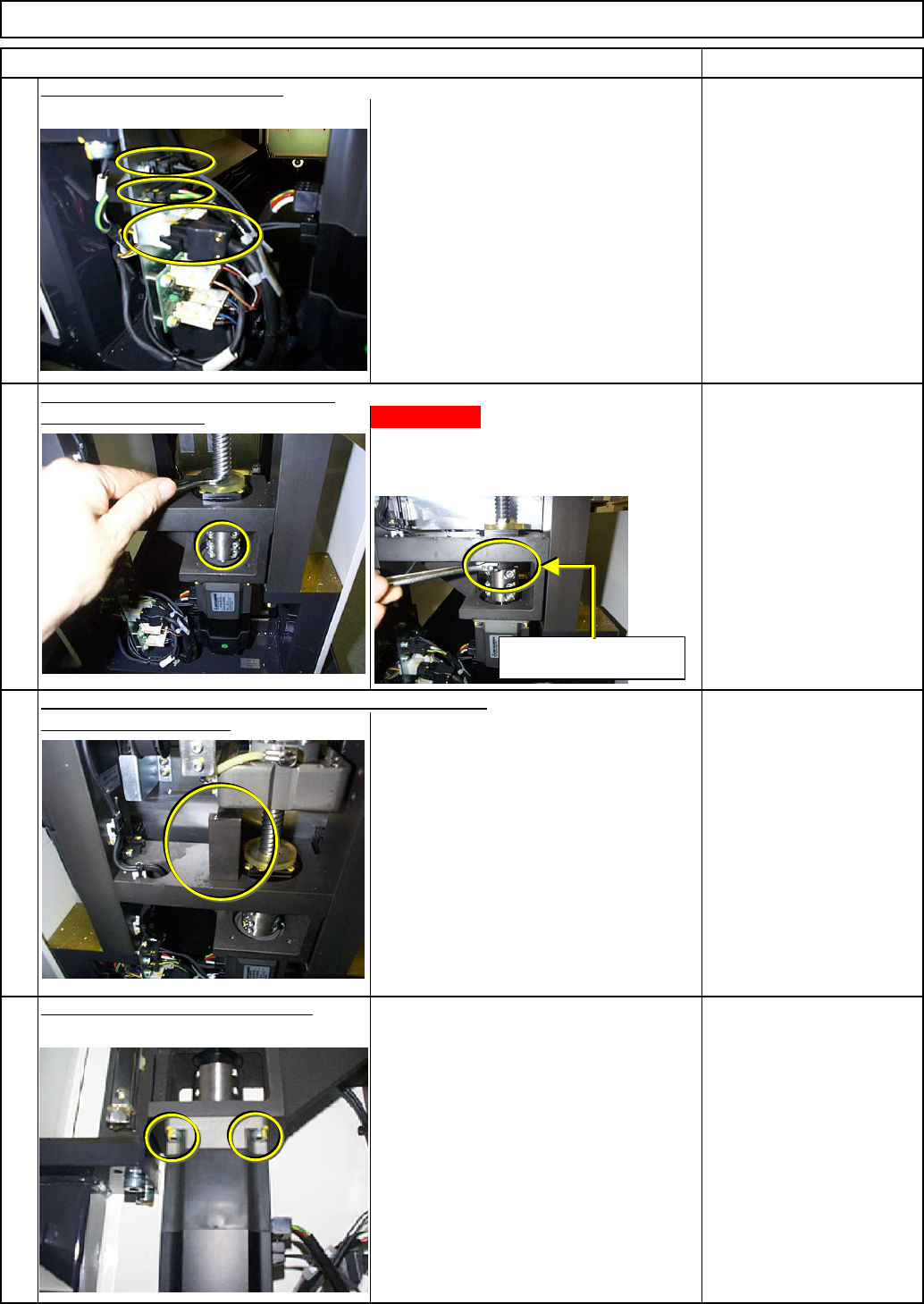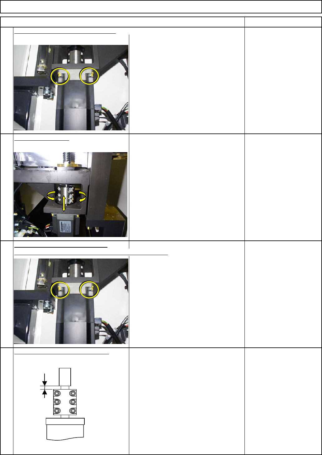 Lift will Fall! When the coupling is loosened, the lift will fall down. To avoid this, hold the ball screw with a wrench. Block (Not designated) Remove the motor connectors. Allen key 5 mm Screw M5 4 pcs. Remove the moto…