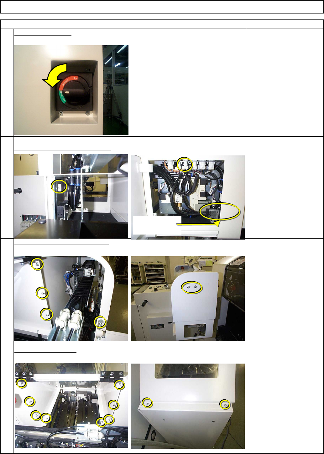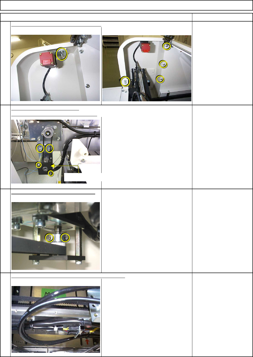 Item Open the cover of the delivery position. Open the maintenance door. Remove the door switch connector. 1 Switch off the power. Remarks Remove the top cover. Allen key 3 mm Phillips screwdriver #2 M4×8L 8 pcs. M4×10L …