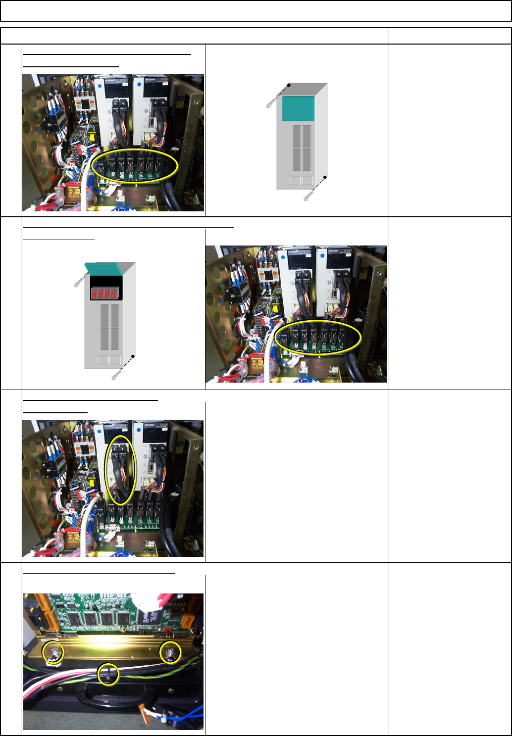 Tray Shuttle Tray Cut off the cable ties on the right side. Pull out the box. Remove the driver connectors. 6 7 8 Be careful not to let the cables be caught. Phillips precision screwdriver Connector screws Remove the con…