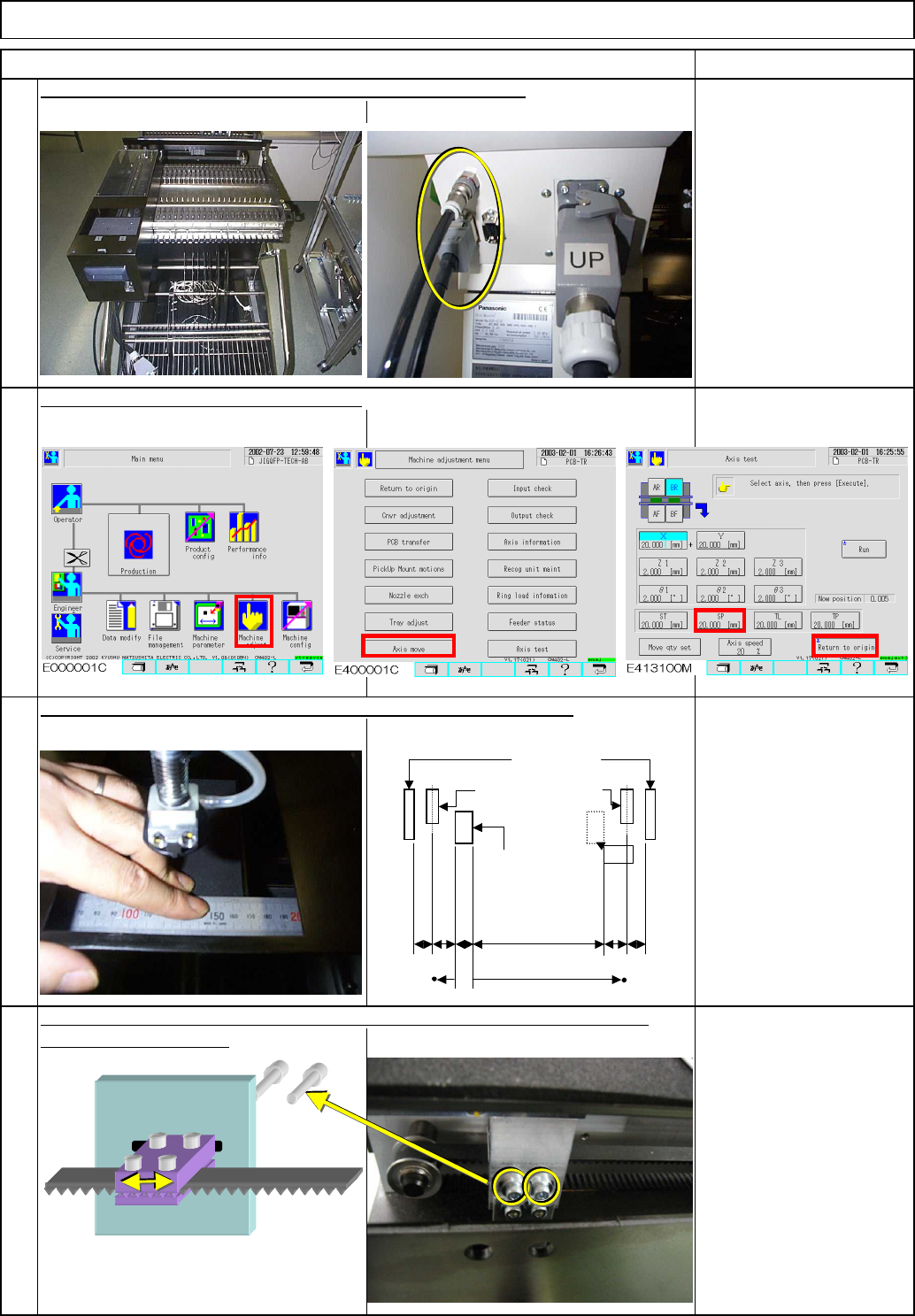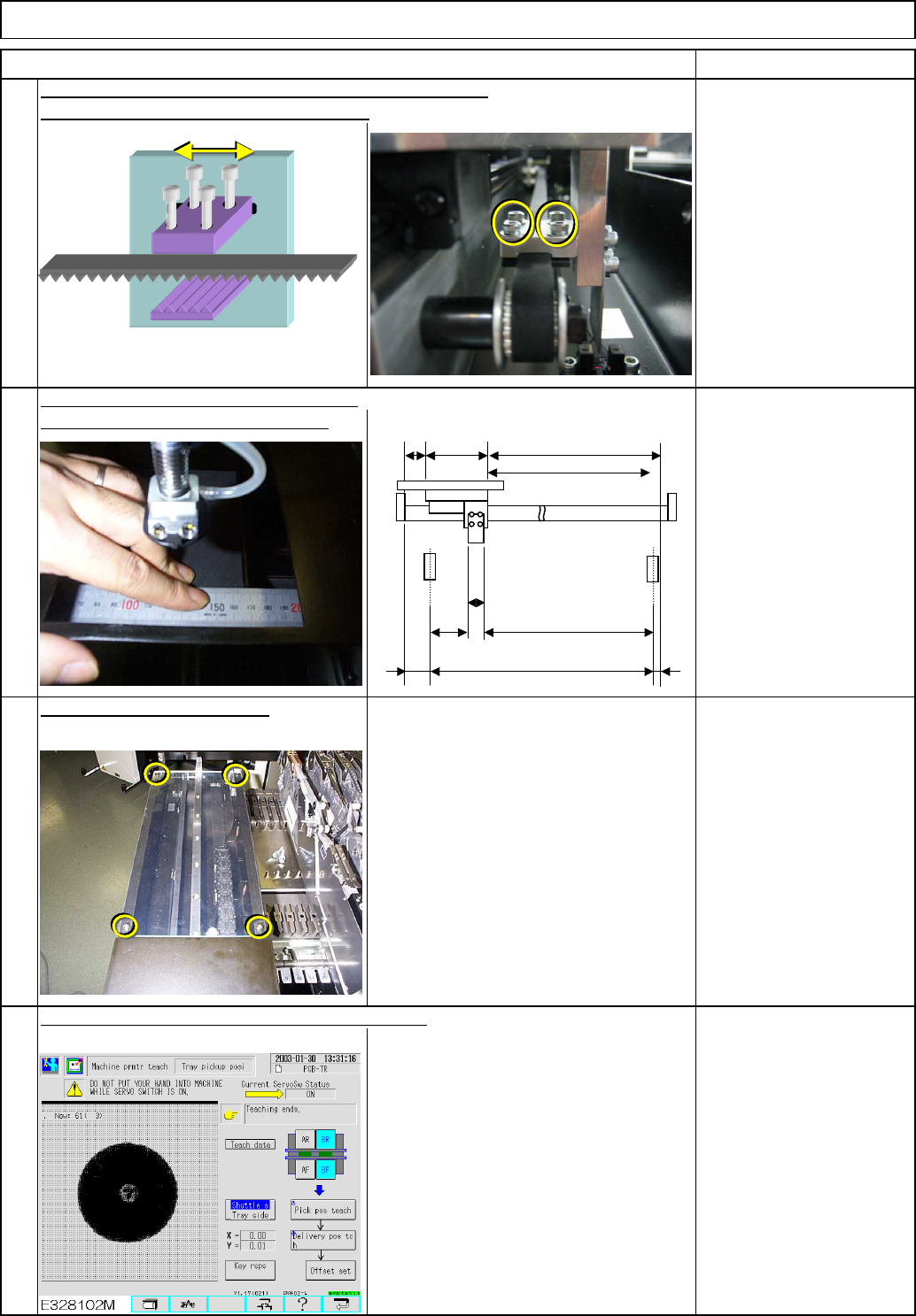 Tray Shuttle Tray Carry out the "return-to-origin" operation. With the feeder change cart removed, connect the connector. When the distance is 3 mm or less, loosen the bolt placed on the back of the Item Remark…