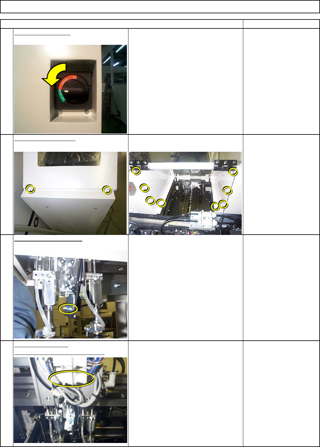 Disconnect the sensor connector. 3 4 2 1 Cut off the cable tie. Remove the LED sensor. Remove the top cover. Phillips screwdriver #2 Allen key 3 mm Screw M4 2 pcs. M4 x 10L 8 pcs. Nipper Remarks Allen key 2.5 mm Screw M3…