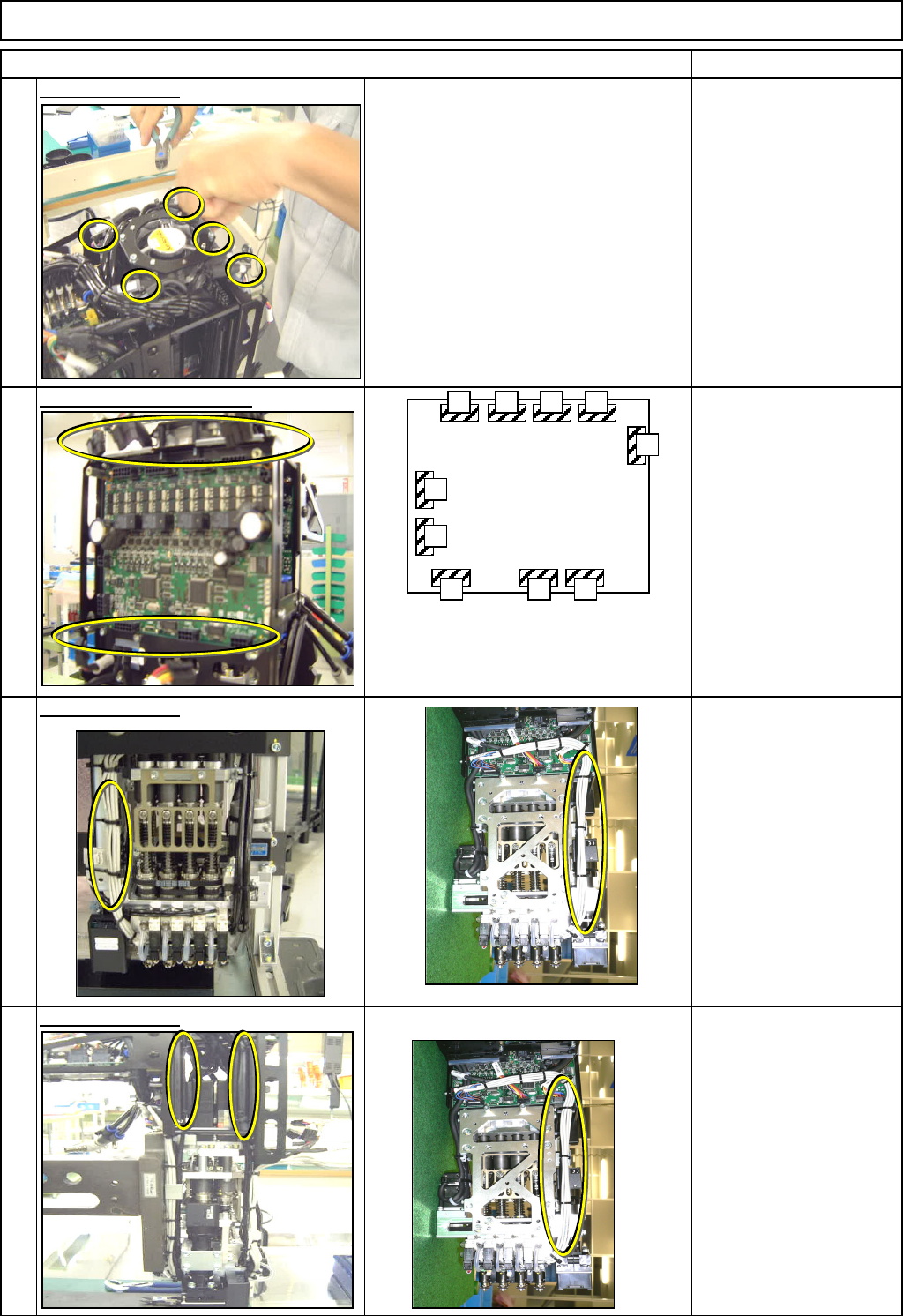 Machinery Part Replacement Remarks Remove the head assembly. Refer to "Transfer Head Replacement." [Check when replacing the board!!] When replacing the board, all the head driver software versions should be th…