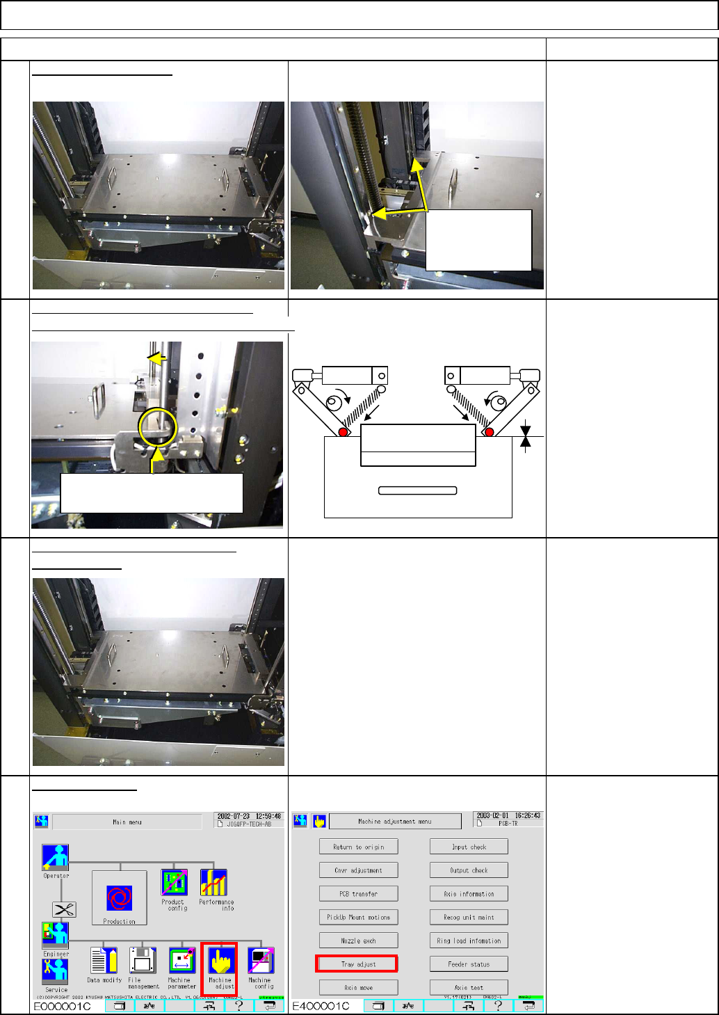 10 Tray 12 Phillips screwdriver #2 Allen key 3mm Screw M4 2 pcs. remove the jig. Once the adjustment is complete, 11 Mount the jig on the lift. Rotate the eccentric pins so that the shaft is aligned with the jig as shown…