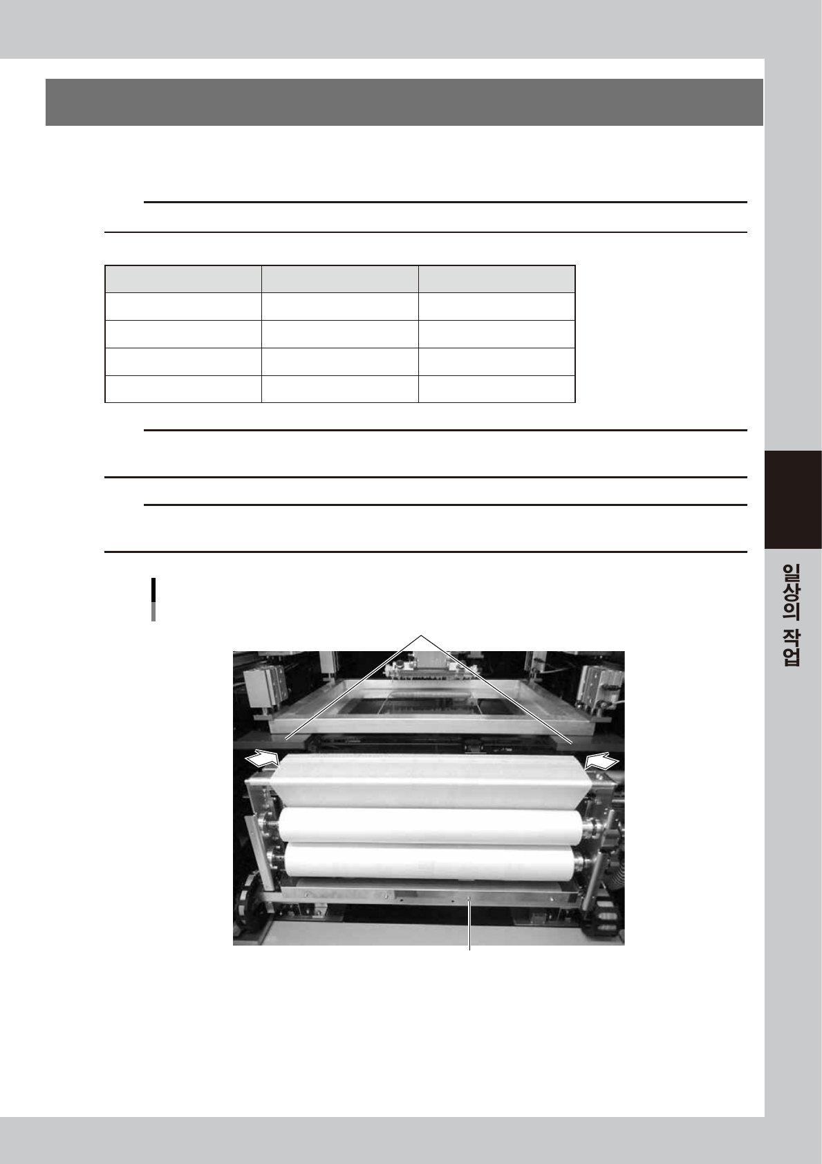 거즈 롤은 헤드 ( 스퀴지 ) 의 폭을 고려해서 선택해 주십시오 . 정확한 폭을 선택하지 않으면 , 헤드 및 마스크가 손상될 경우가 있