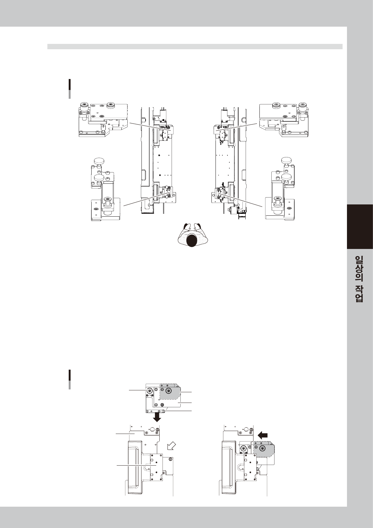 사용하는 마스크의 사이즈에 대응해서 , 마스크 스톱퍼 핀 위치를 다음과 같이 변경할 필요가 있습니다.