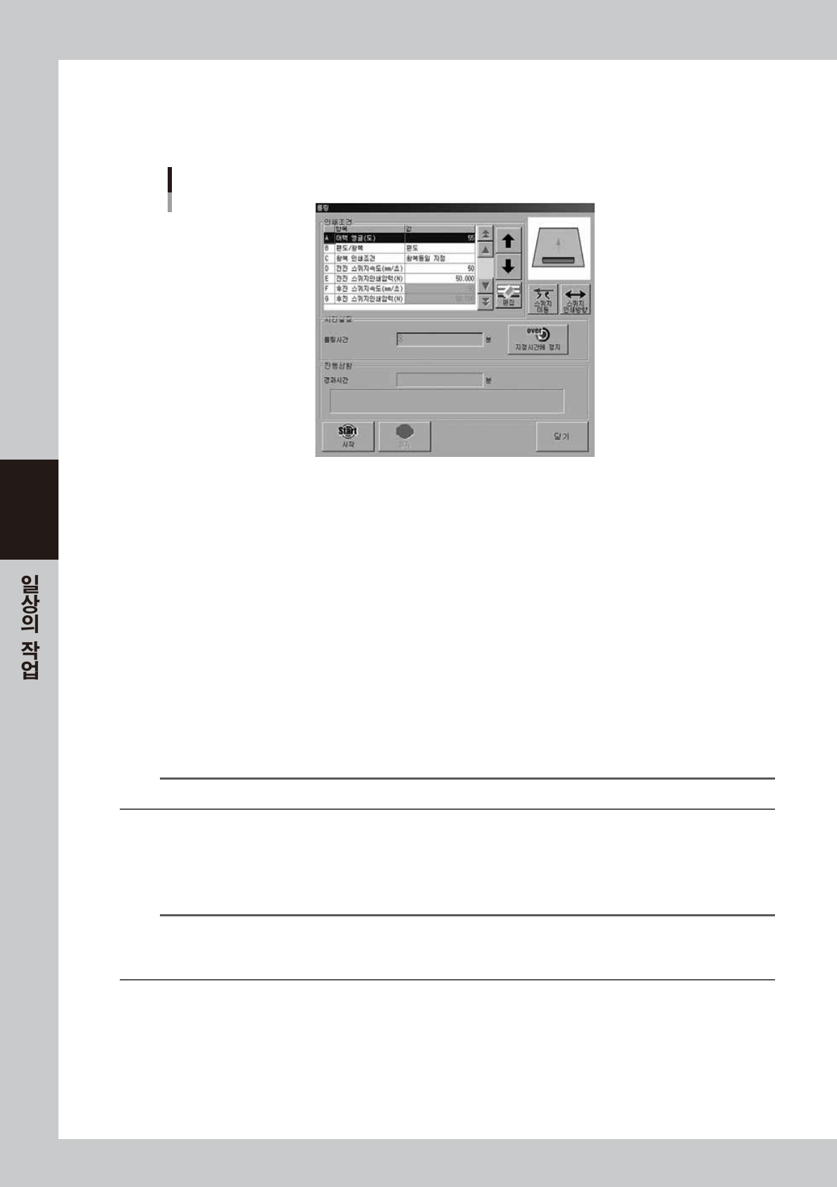 이동시킵니다 . 또한 필요에 따라 [ 스퀴지 인쇄방향 ] 버튼으로 인쇄 방향을 변경해 주십시오 .