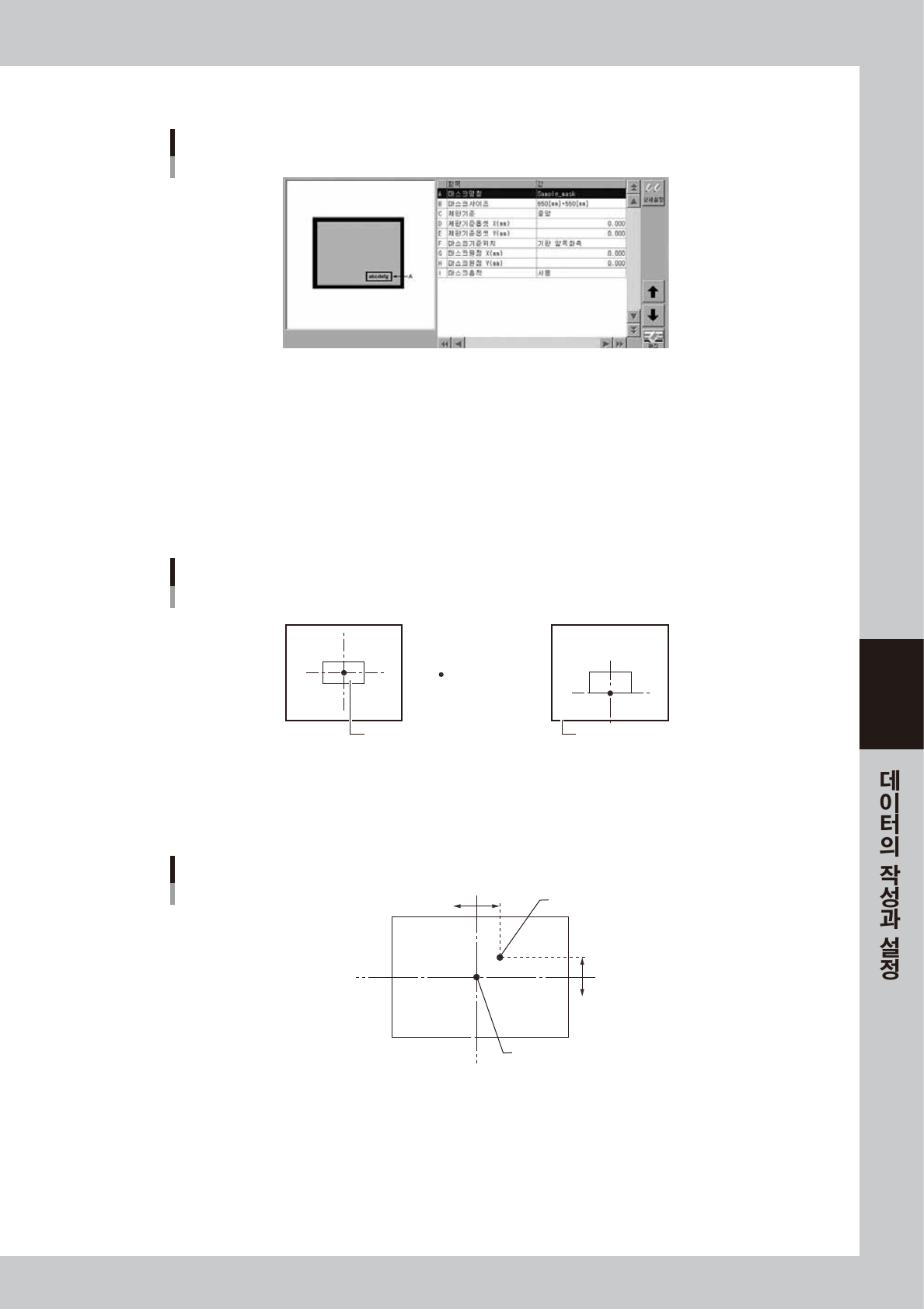 기판과 마스크의 양쪽에 마크가 있을 경우 , 위치맞춤을 하는 방법으로 다음의 2 가지 설정방법이 있습니다 .
