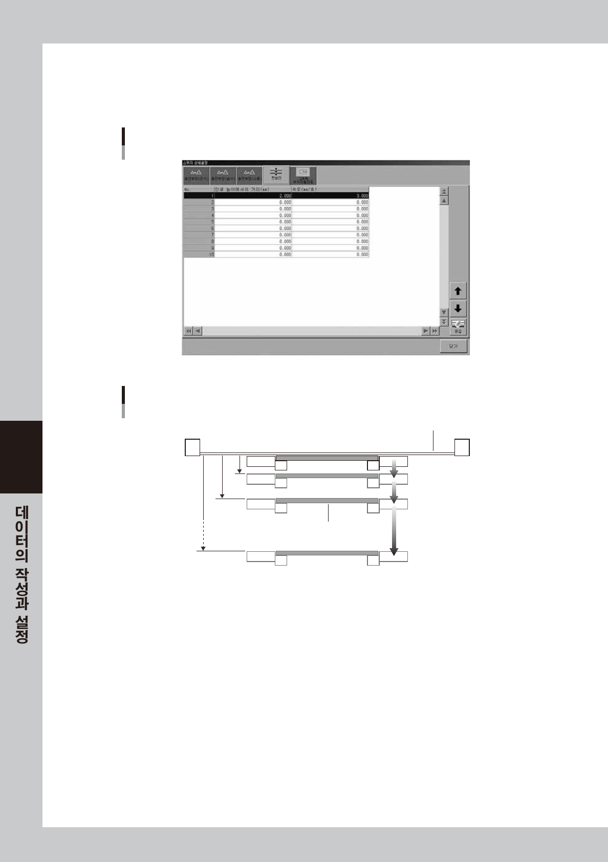 솔더 인쇄후 , 기판이 마스크에서 떨어지는 거리 (mm) 에 대한 속도 (mm/ 초 ) 를 조정할 경우에 설정합니다 .( 최대 10 단