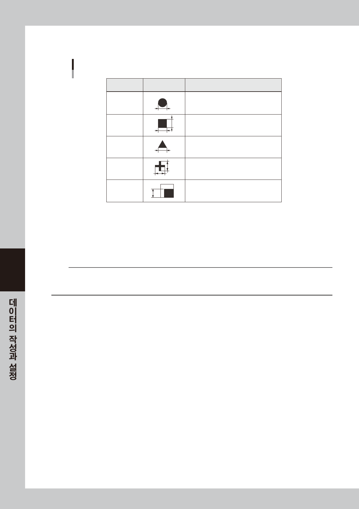 형상타입에는 5 종류가 있습니다 . 사용할 마크에 맞추어 리스트에서 선택하여 주십시오 .