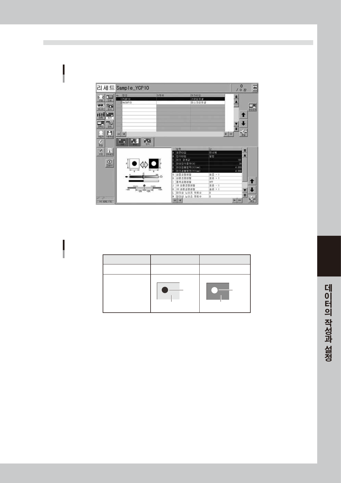 마크표면과 기판 ( 마크주위 ) 과의 명암관계를 설정합니다 . 아래 표를 참고하여 주십시오 .