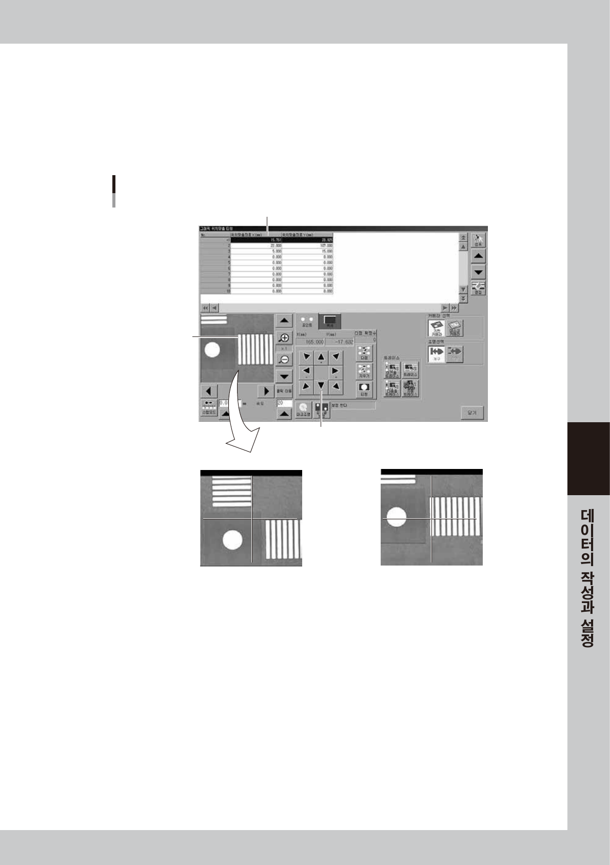 3. 미리 측정해 둔 좌표를「위치맞춤 좌표 X」및「위치맞춤 좌표 Y」에 입력합니다 .