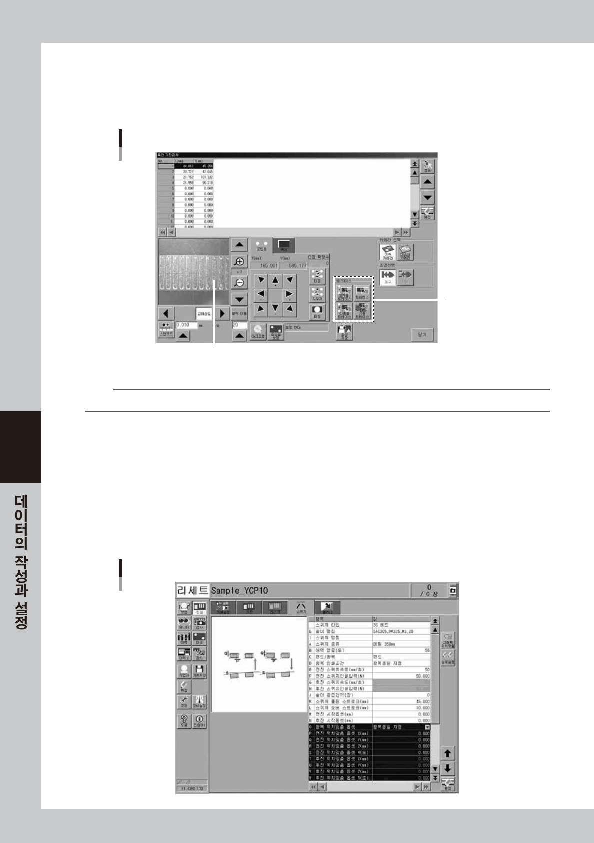 트레이스 기능을 사용해서 육안검사할 경우는 미리 검사좌표를 입력해 둘 필요가 있습니다 .