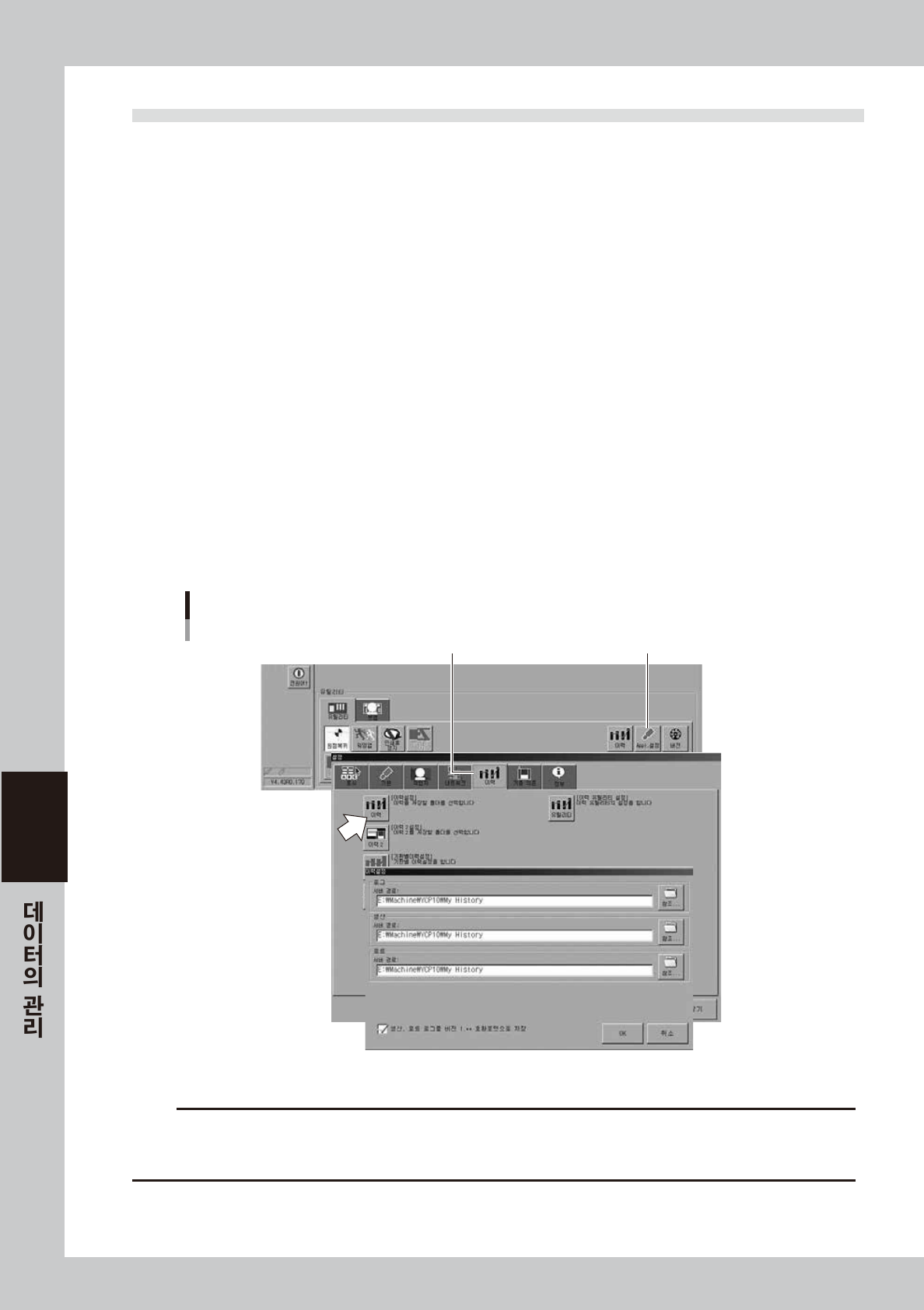 「이력」항목의 저장처를 설정할 경우는 , [ 이력 ] 버튼을 눌러 주십시오 .