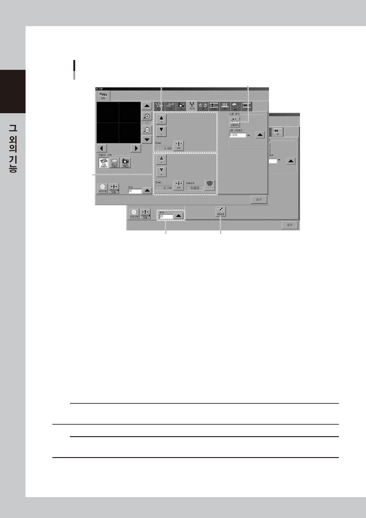 1. SY 축 이동버튼 , [PTP] 버튼