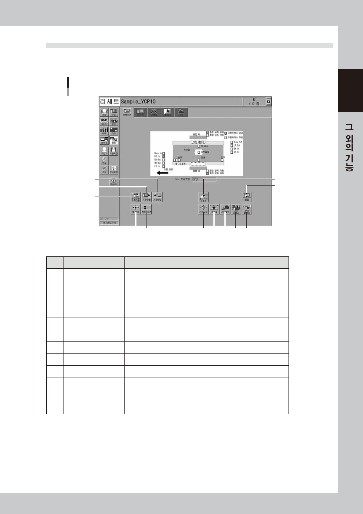 서나 입출력 신호의 상태를 그래픽상에서 확인할 수도 있습니다. 화면상의 각 버튼의 기능에 대해 설명합니다.