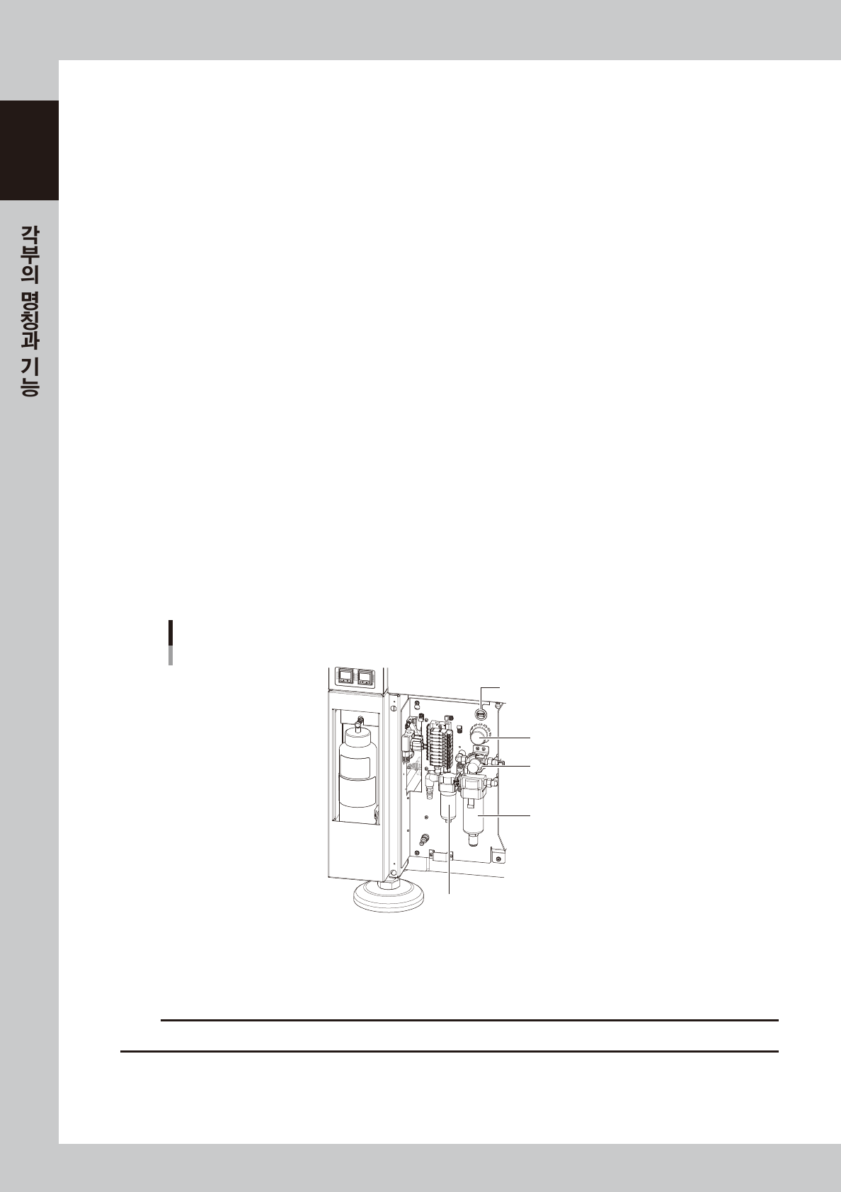 장비에 공급되어 있는 에어압의 표시와 조정을 합니다 . 상세한 설명은 , 부록의「1.1 에어압 조정부」를 참조해 주십시오 .