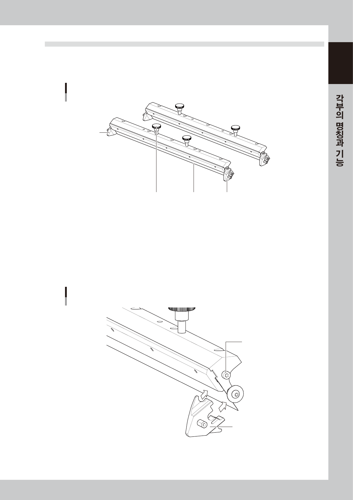 스퀴지를 헤드부의 홀더에 장착하기 위한 나사입니다 . 고정노브의 간격이 좁은 스퀴지를 앞쪽에 장착합니다 .