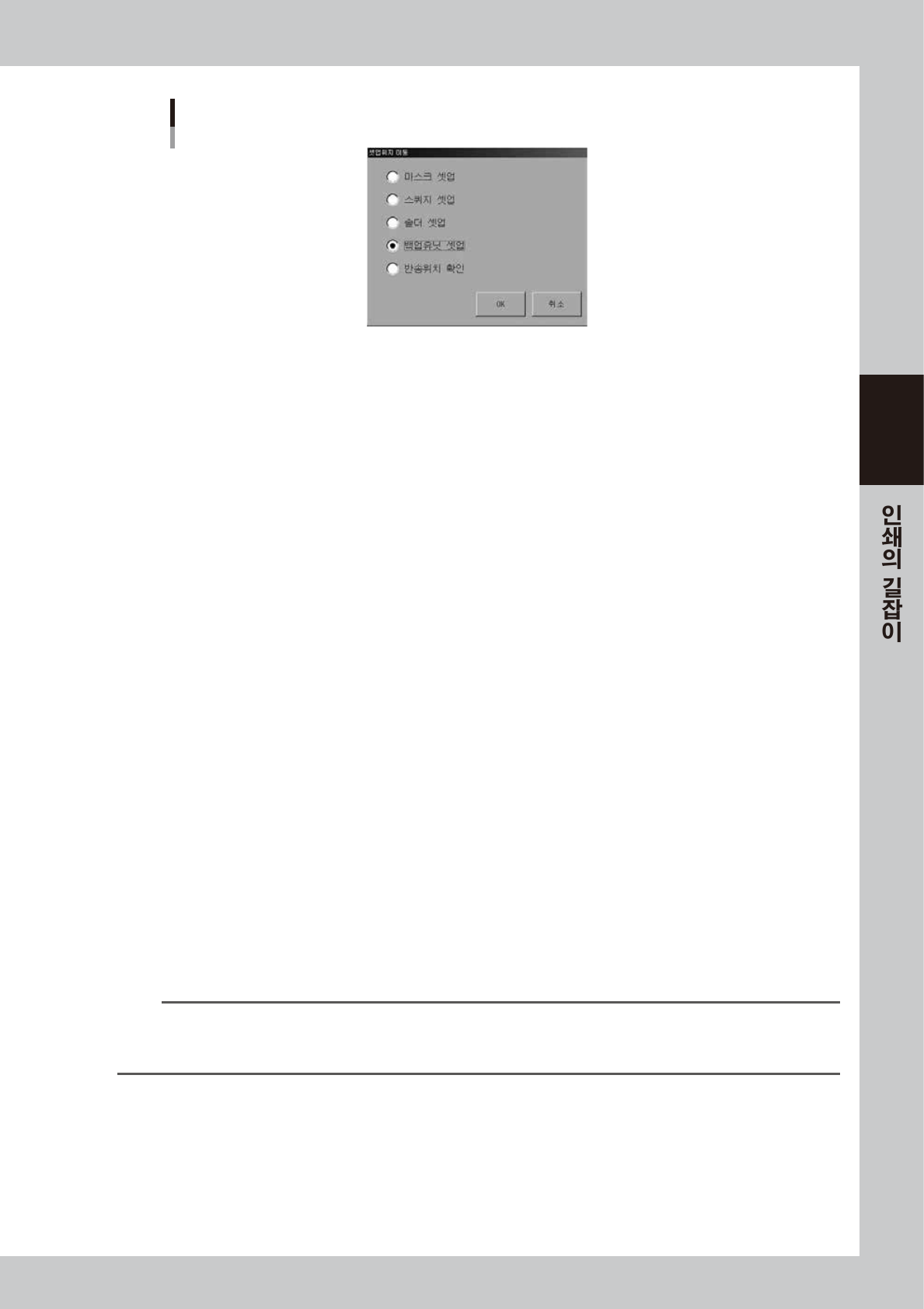 세팅위치에 대해서는 , 제 4 장「7.1 마스크 사이즈와 스톱퍼 핀 위치」또는 본체의 커버를 열어서 좌측에