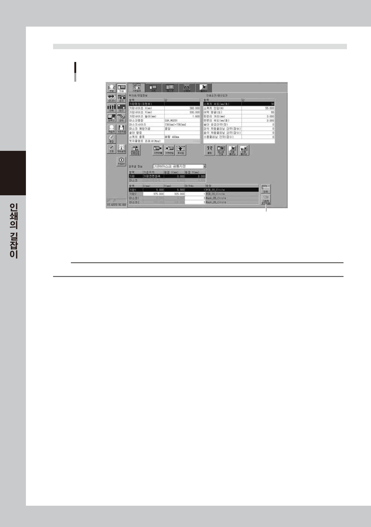 3. 기판과 마스크의 피듀셜 마크의 정확한 위치와 인식할 마크 No. 를 입력합니다 .