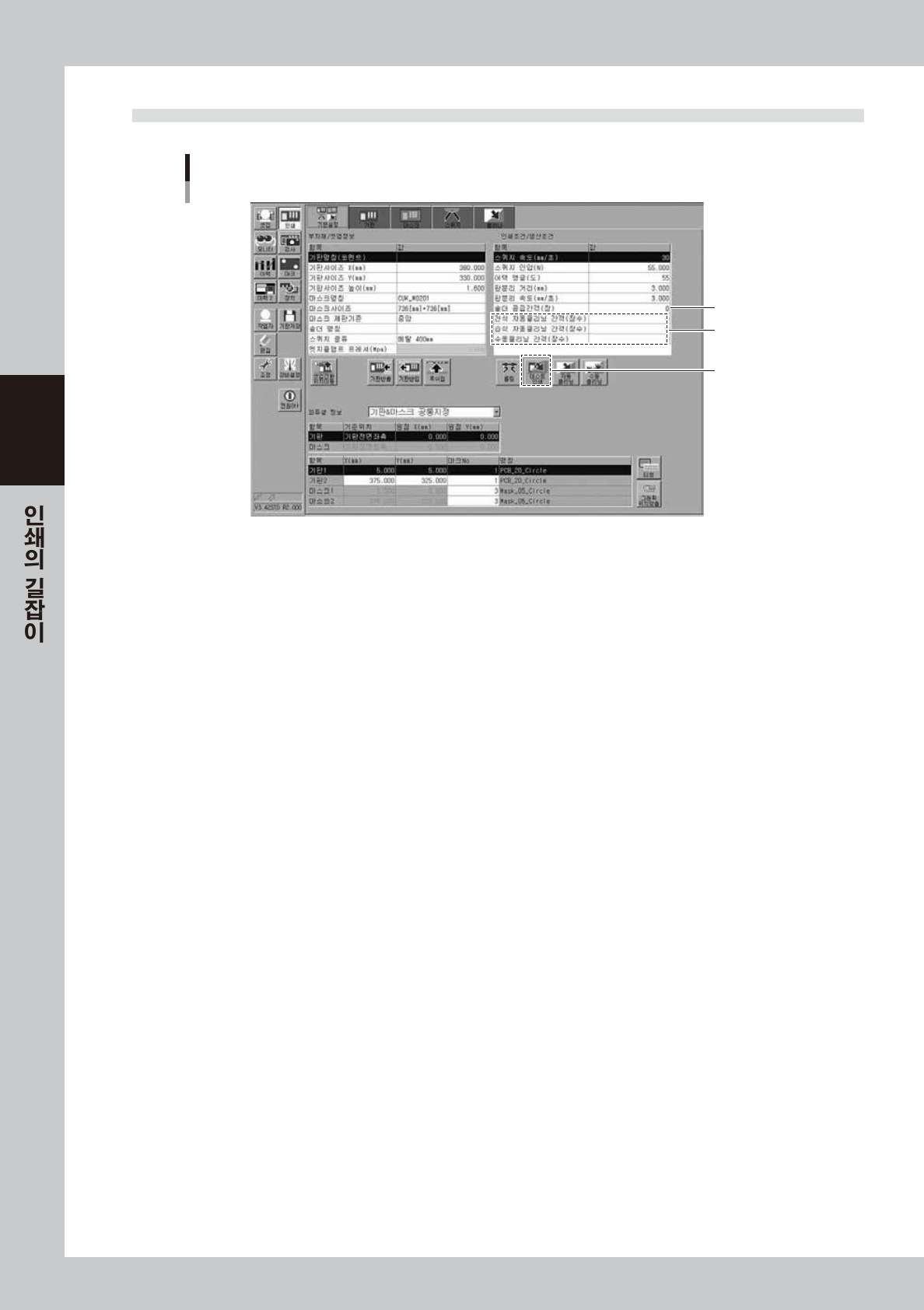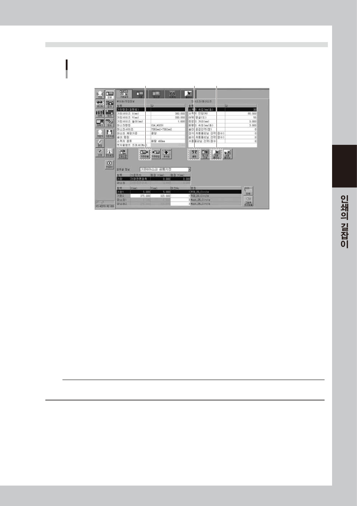 양호한 인쇄품질로 생산하기 위해서는 , 전술의 인쇄 동작별로 조건을 올바르게 설정할 필요가 있습니다 .