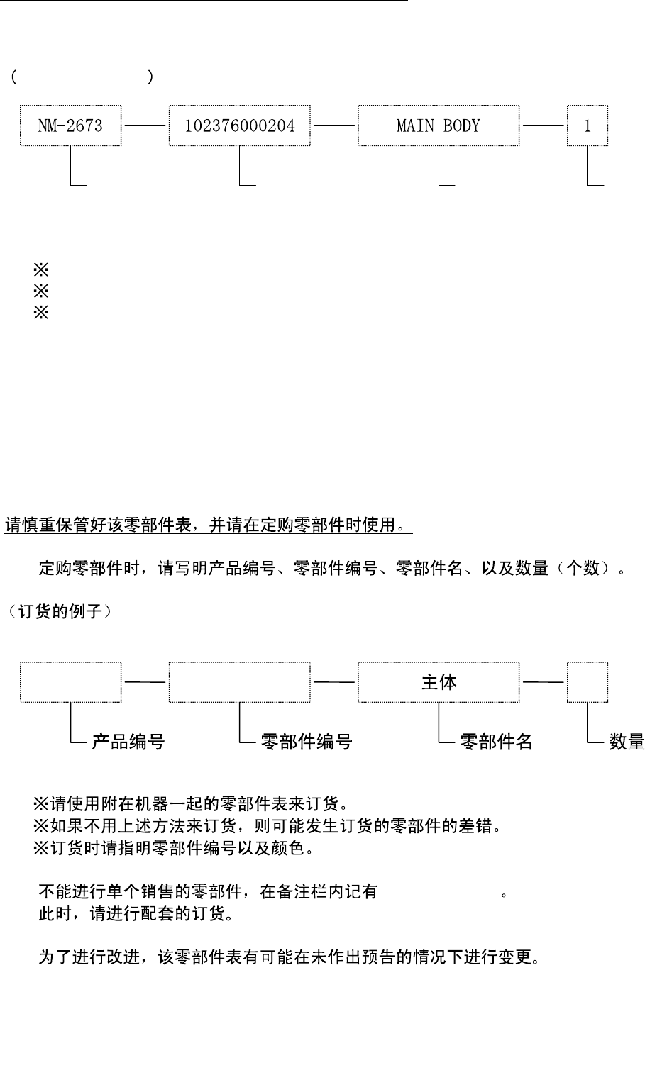 1. Order part by referring to product No., part No., part name and quantity.