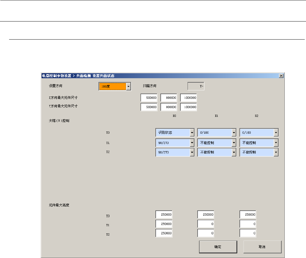 机器控制参数 2- 62 2-4-7-1 设定项目 No. 项目 输入范围 单位 备考 最小值 最大值 1 设置方向 0 270 ° 初始值: 180 ° 0 ° , 90 ° , 180 ° , 270 ° 2 扫描方向 初始值: Y- 3 各 X 分割数的 最大元件外形尺寸 4 各 Y 分割数的最大 元件外形尺寸 5 θ 控制 0 :识别状态 1 : 0/180 ° 2 : 9 0/270 ° 3 :不能控制 6 元件最大高度 2-…