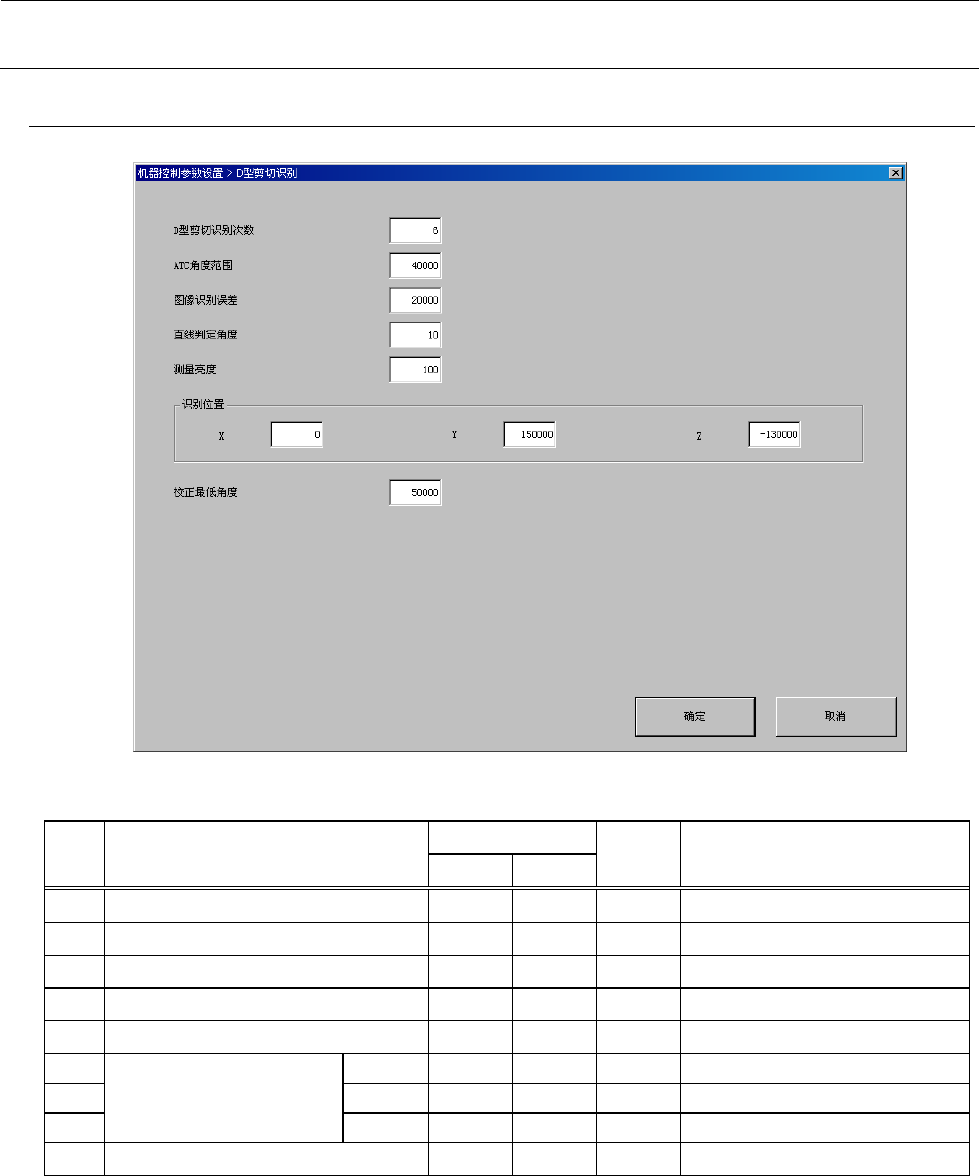 机器控制参数 2- 111 2-5- 27 -2 设定项目(照明控 制) No. 项目 输入范围 单位 备考 最小值 最大值 1 定心方式 0 : 激光 1-3 :预备 ※ 1 2 数据有効 / 无效 0 1 0 :无效 1 :有効 (默认) ※ 2 3 照明种类 4 OCC 的选择 5 照明模式有効 / 无效 0 1 0 :无效 1 :有効 (默认) ※ 3 6 照明模式 模式 0 :垂直照明 1 :斜光照明 7 可以编辑设备 8 照…