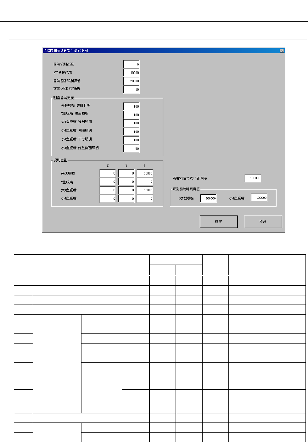 机器控制参数 2- 114 2-5- 30 预热速度详细 设置 2-5- 30 -1 设定项目 No. 项目 输入范围 单位 备考 最小值 最大值 1 轴 X 轴、 Y 轴 2 衰减等待时间 3 轴控制参 数 加速度( G ) G 4 减 速度( G ) G 5 最高速度( mm/s ec ) mm/se c 6 反冲击率( % ) % 7 加减速 时间常 数 8 速度条件 一定速度默认 9 移动速度 时相对于 最高速度 的比率 ( %…