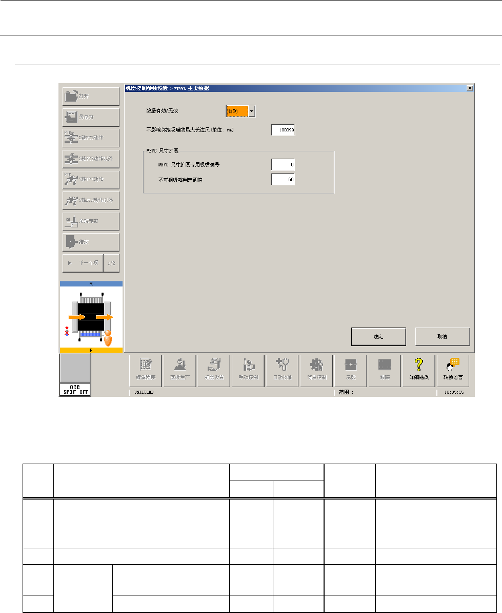 机器控制参数 2- 63 2-4-8 共面检测 元件共面设置 2-4-8-1 设定项目 No. 项目 输入范围 单位 备考 最小值 最大值 1 各元件种类的控 制表 0 1023 2 元件种类 0 15 默认 : 255 ° 3 检查 元件种类 0 ~ 5 : 执行 6 ~ 15 :不 执行 4 表的适用最大引 脚间距 1/100mm 5 表的适用最大引 脚宽度 1/100mm 6 元件引脚宽度和引脚间距的 比( % ) % 7 元件引…