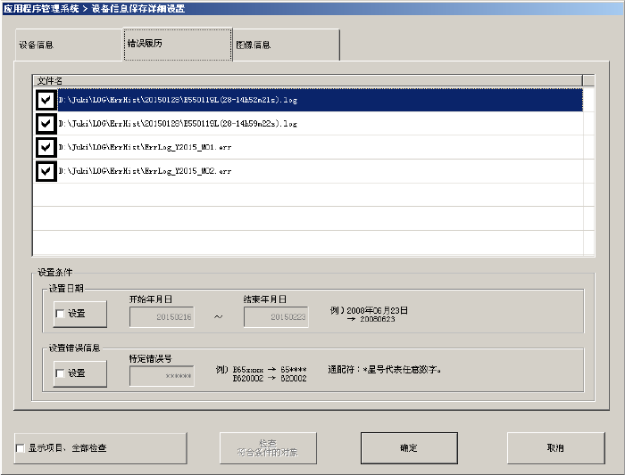 保存对象文件夹:D:\JUKI\LOG\ ErrHist