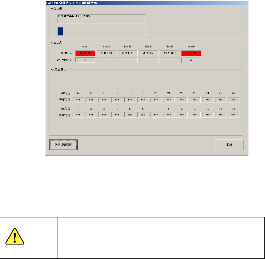 Step1: 在[在 Head 上的吸嘴状况]画面中,按[半自动归还吸嘴]按钮。
