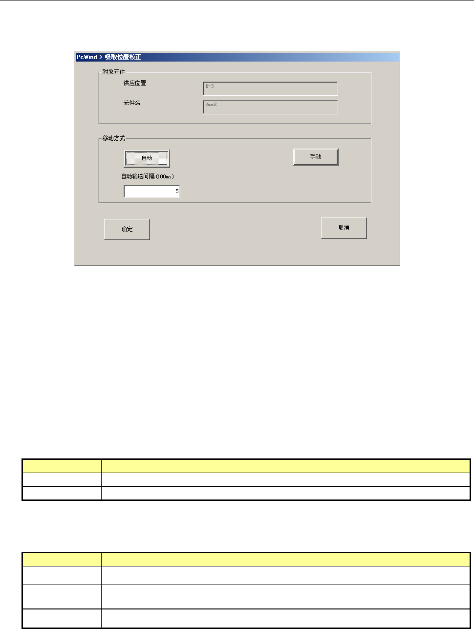 (2) 显示吸取位置校正条件