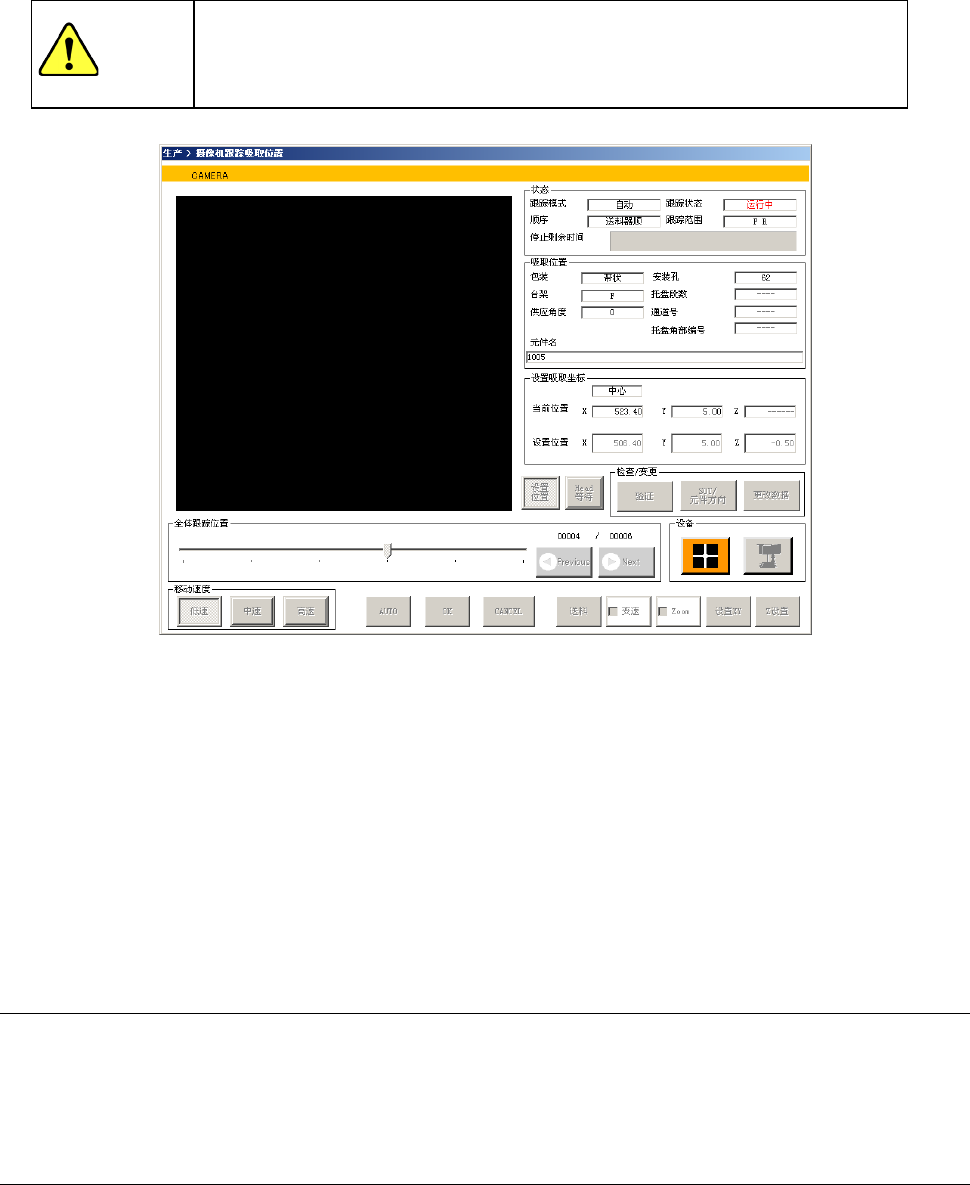 按[确定]按钮开始吸取位置的校正后,显示吸取位置摄像机跟踪画面。