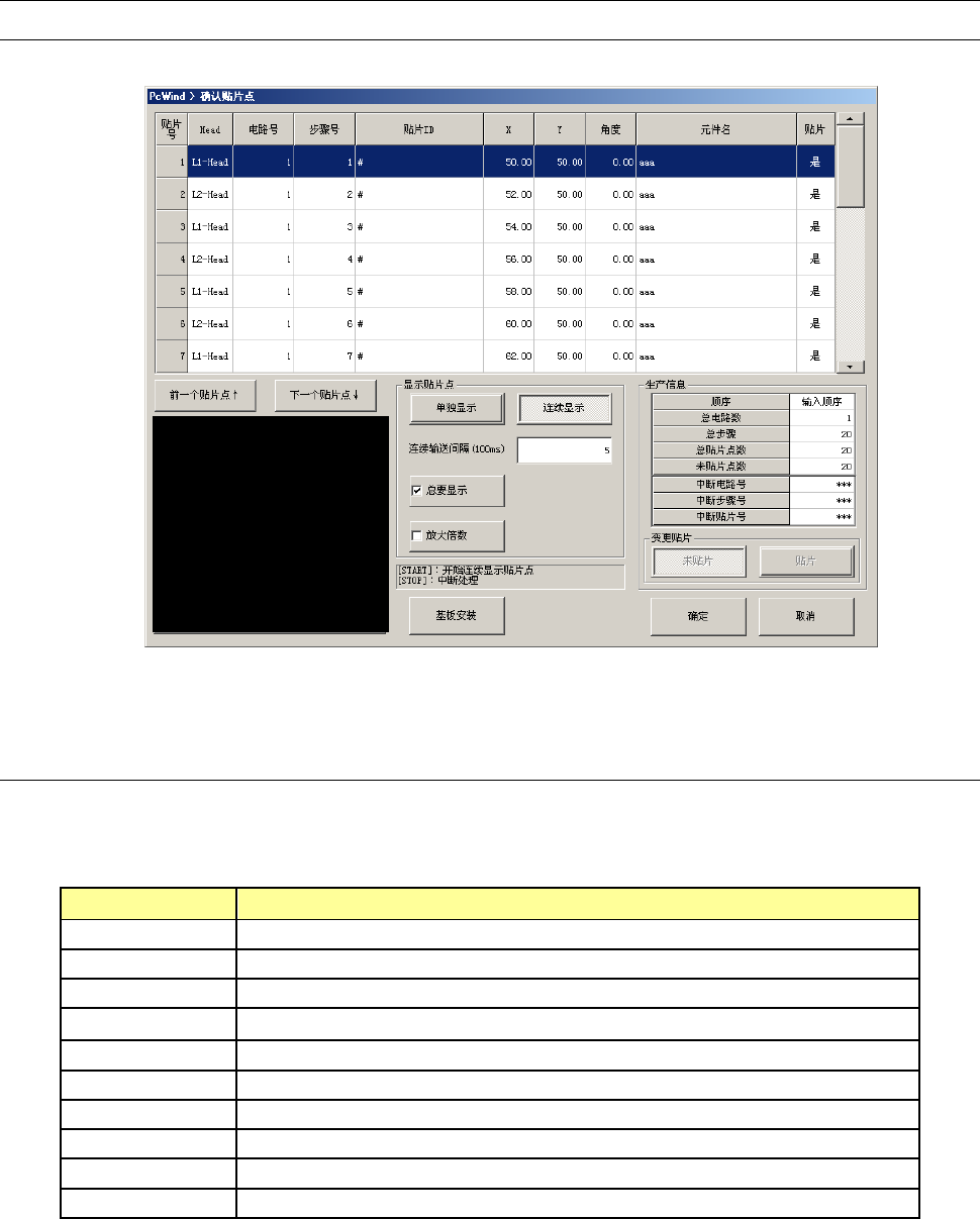 在生产开始前显示各贴片点列表,可以检查元件是否已全部贴片,确定是否继续生产、进行贴片。