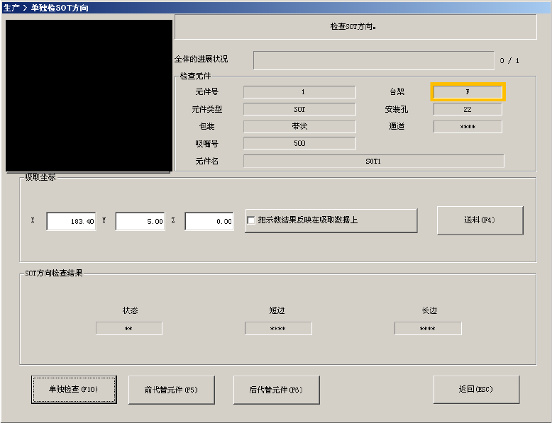 显示吸取对象元件的吸取位置的内容。也可把吸取位置改为“前代替元件”及“后代替元件”的位